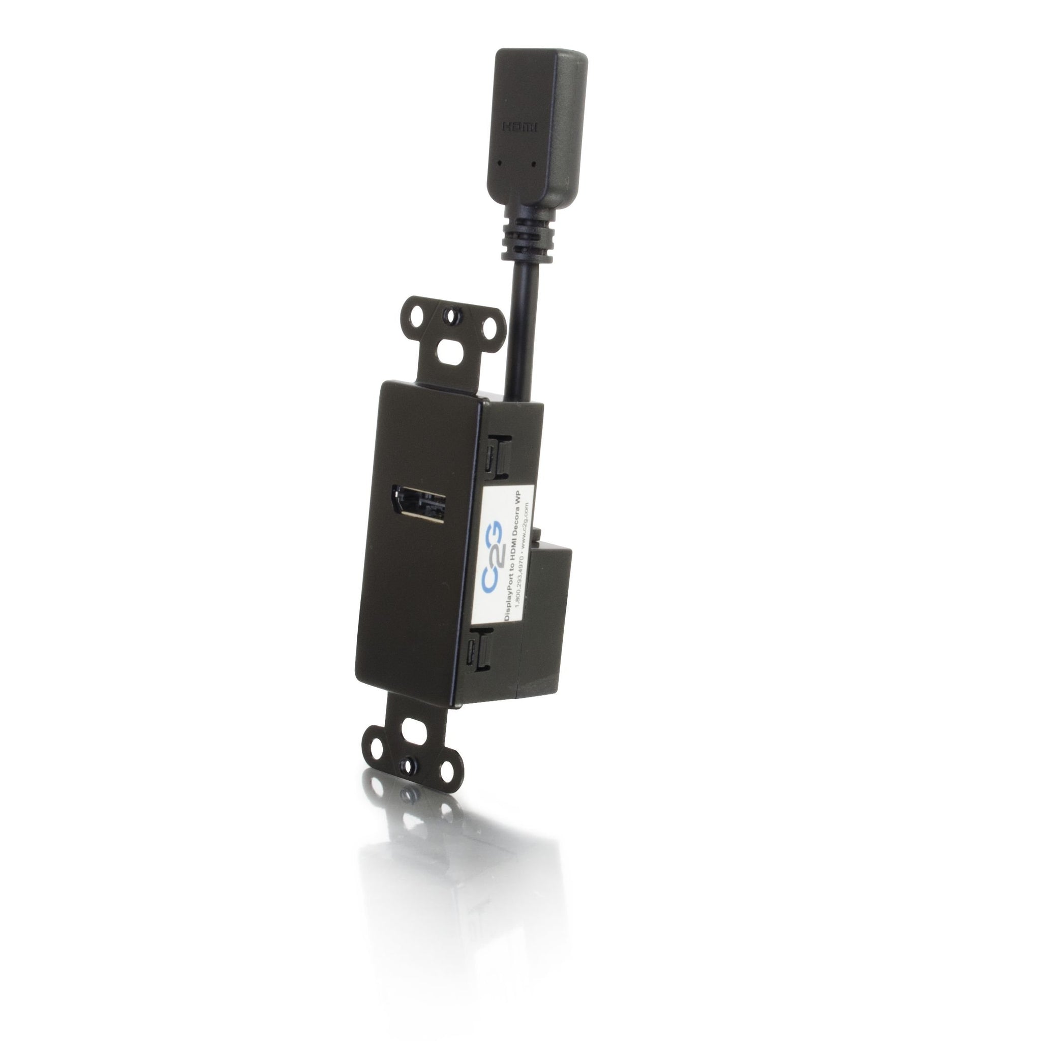 - Decora style wall plate for adapting DisplayPort to HDMI at resolutions up to 1080p