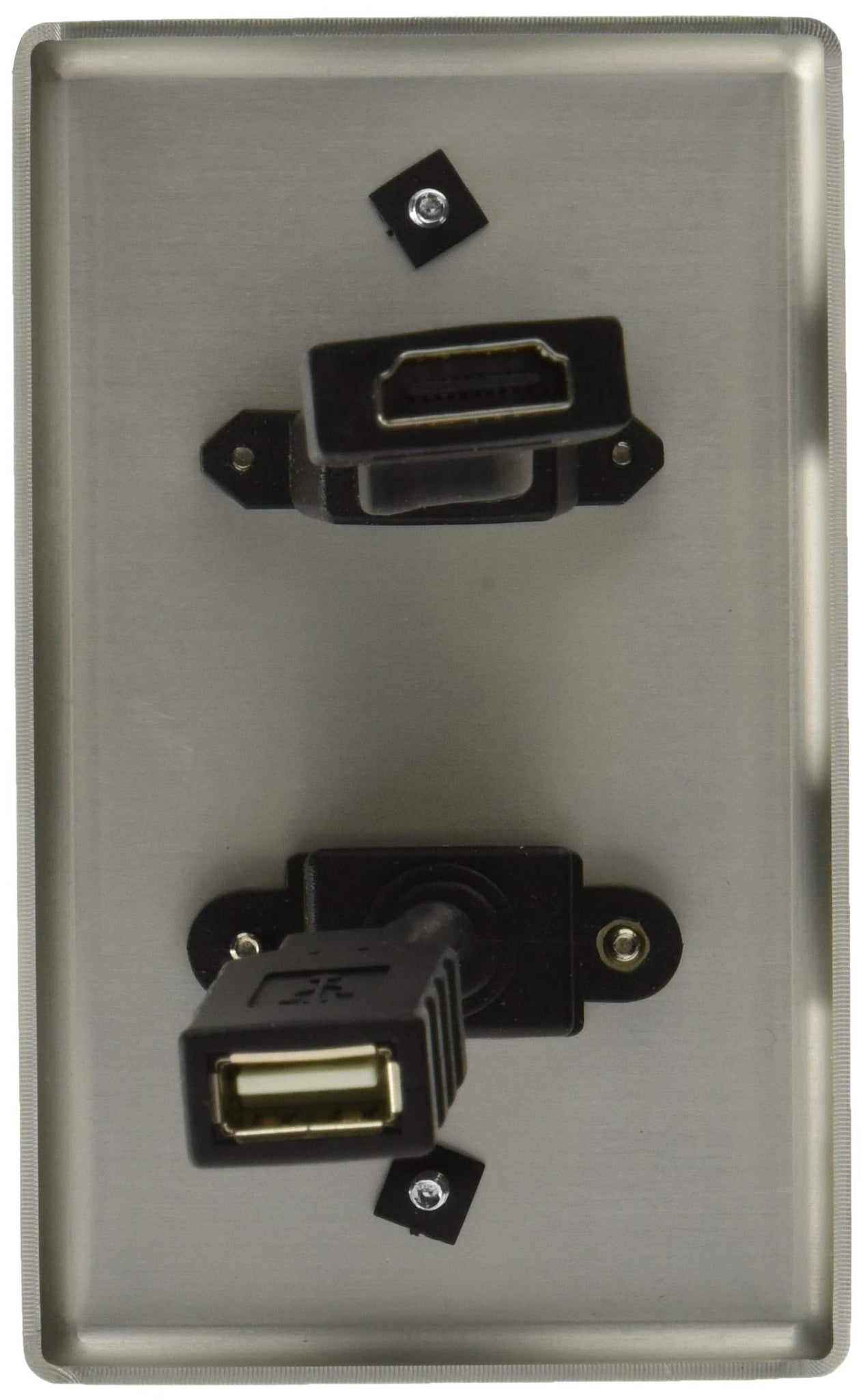 C2G 39874 HDMI and USB Pass Through Single Gang Wall Plate, Brushed Aluminum