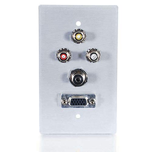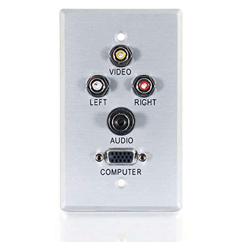 C2G 40498 VGA, 3.5mm Audio, Composite Video and RCA Stereo Audio Pass Through Single Gang Wall Plate, Brushed Aluminum