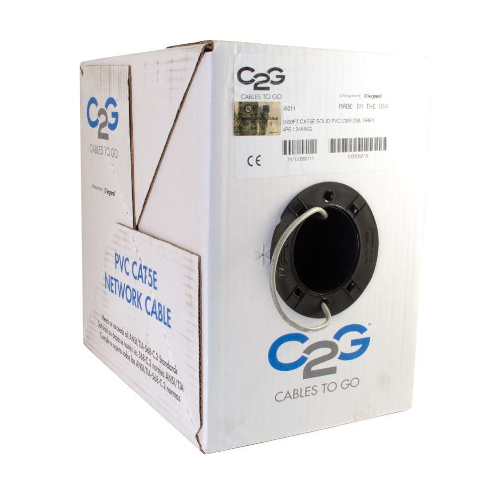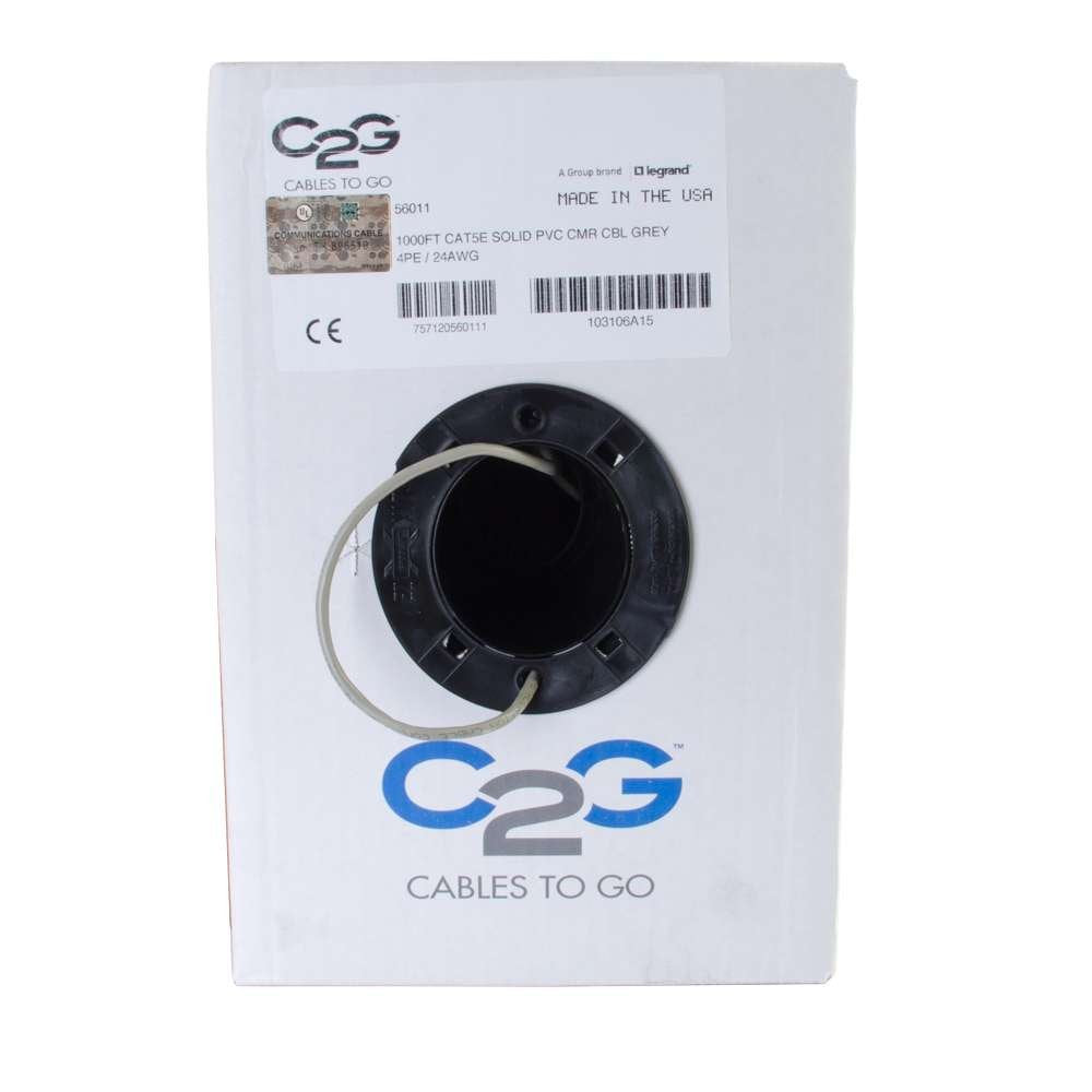 C2G 56011 Cat5e Bulk Cable - Unshielded Ethernet Network Cable with Solid Condutcors, Riser CMR-Rated, TAA Compliant, Gray (1000 Feet, 304.8 Meters) (Made in the USA)