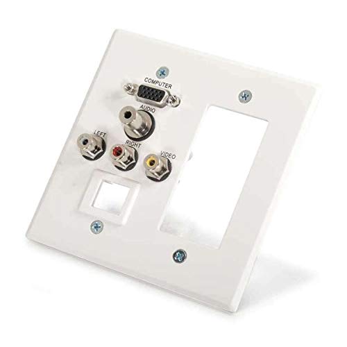 C2G/Cables to Go 41030 VGA, Stereo, Composite Video and RCA Stereo Pass Through Double Gang Wall Plate with One Cutout and One Keystone - White Brushed Aluminum