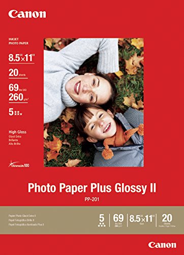 Details: Save money and print your pictures at home with this 20-pack of photo paper from Canon. The Photo Paper Plus Glossy II Vidid Colors yields a glossy finish and exceptionally rich colors, giving your images the look and feel of a traditional photograph. Measuring 8.5 x 11 inches, each sheet of photo paper is the standard size to fit neatly into any printer. Ensuring you quality printing at home, this paper will make it even easier to share your favorite photographic memories with your friends and family.