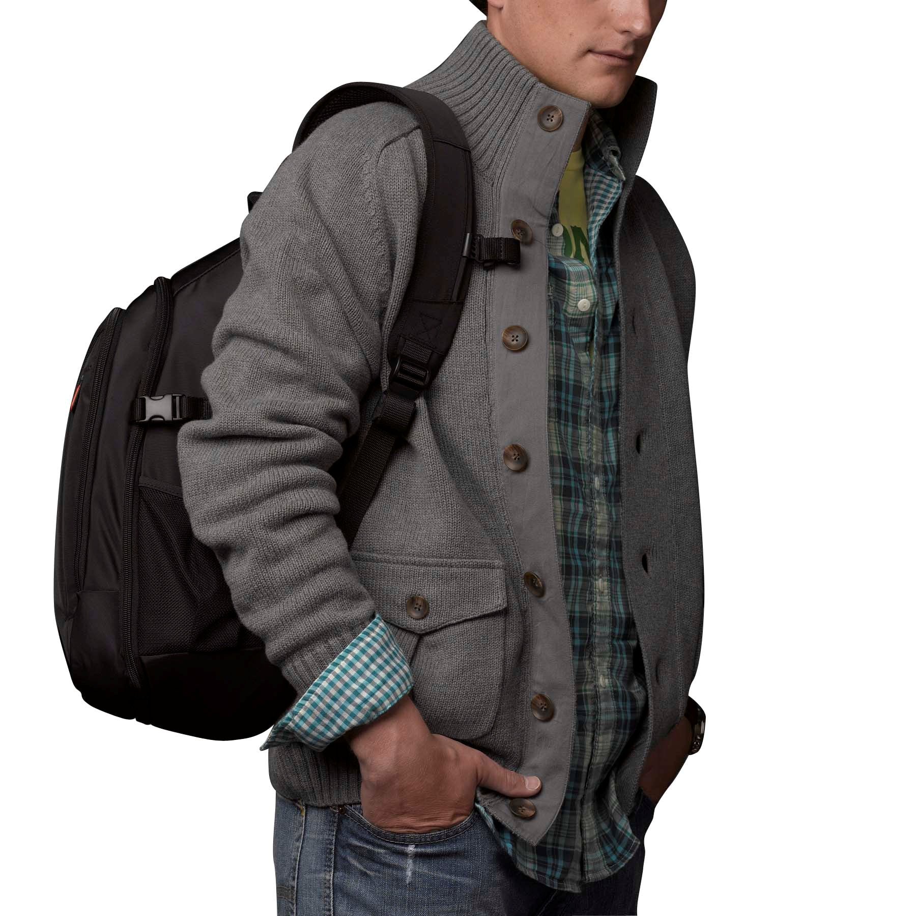 - Padded laptop compartment safely stores 15 inch MacBook Pro or 14 inch PC