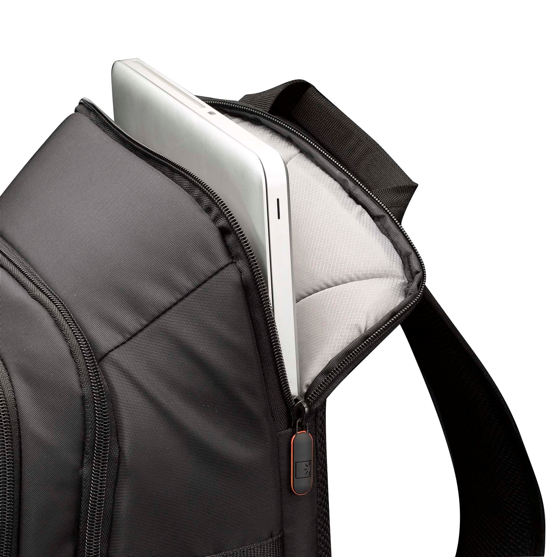 Details: Case Logic DCB-309 Carrying Case (Backpack) for 15" Notebook - Black - Impact Resistance - Nylon - 17.30" (439.42 mm) Height x 11.40" (289.56 mm) Width x 8.40" (213.36 mm) Depth