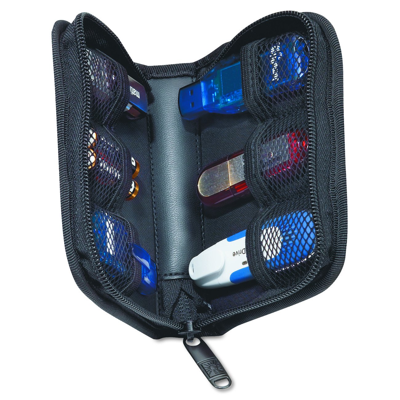 - Easy access pockets expand to store multiple sizes of USB drives