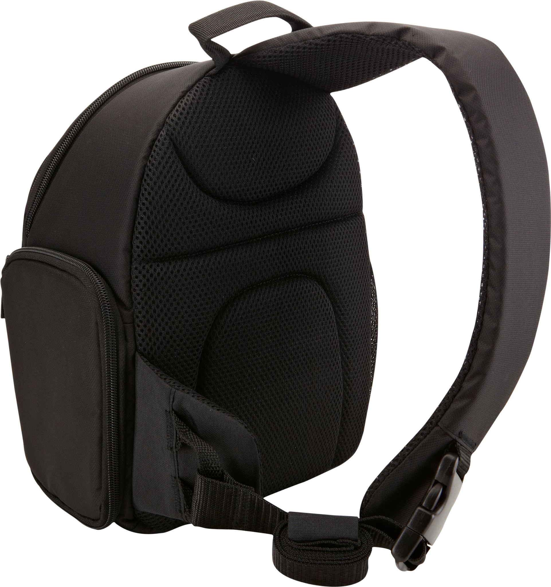For a full day of shooting, our most compact DSLR sling carries your DSLR with attached zoom lens plus additional accessories. Easily access them all by simply pulling the sling forward.