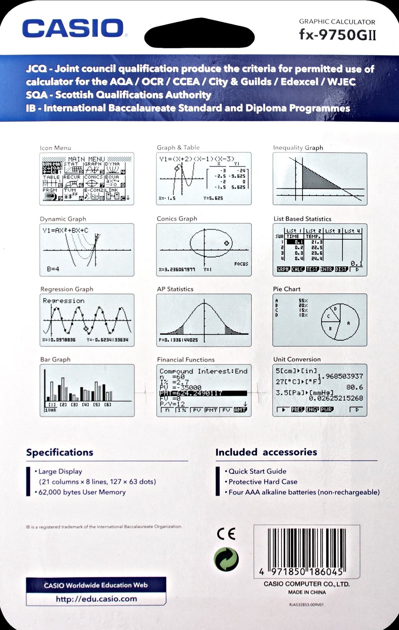 Casio Graphing Calculator - Blue (FX9750GII)