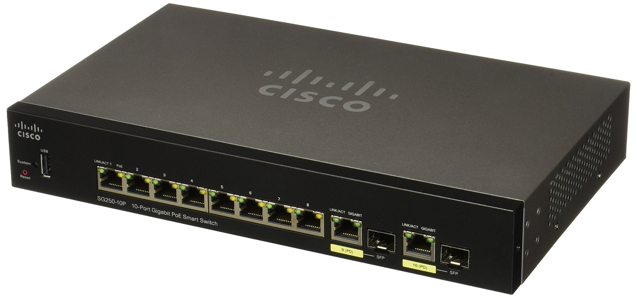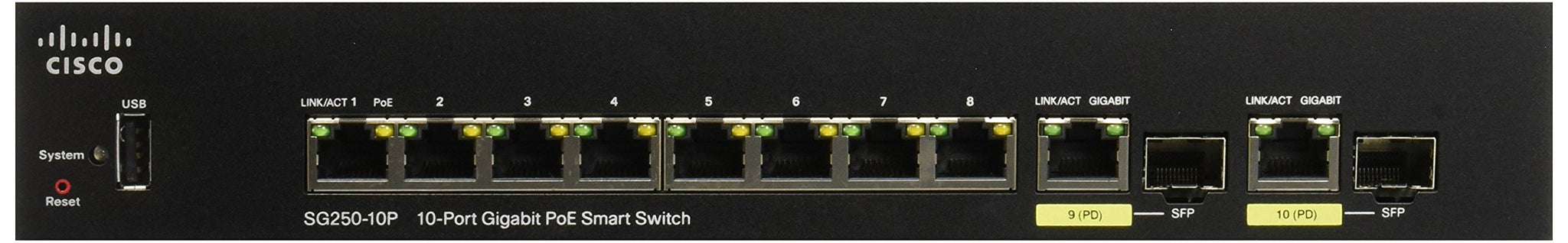 CISCO SYSTEMS Sg250-10P 10-Port Gigabit PoE Switch (SG25010PK9NA)