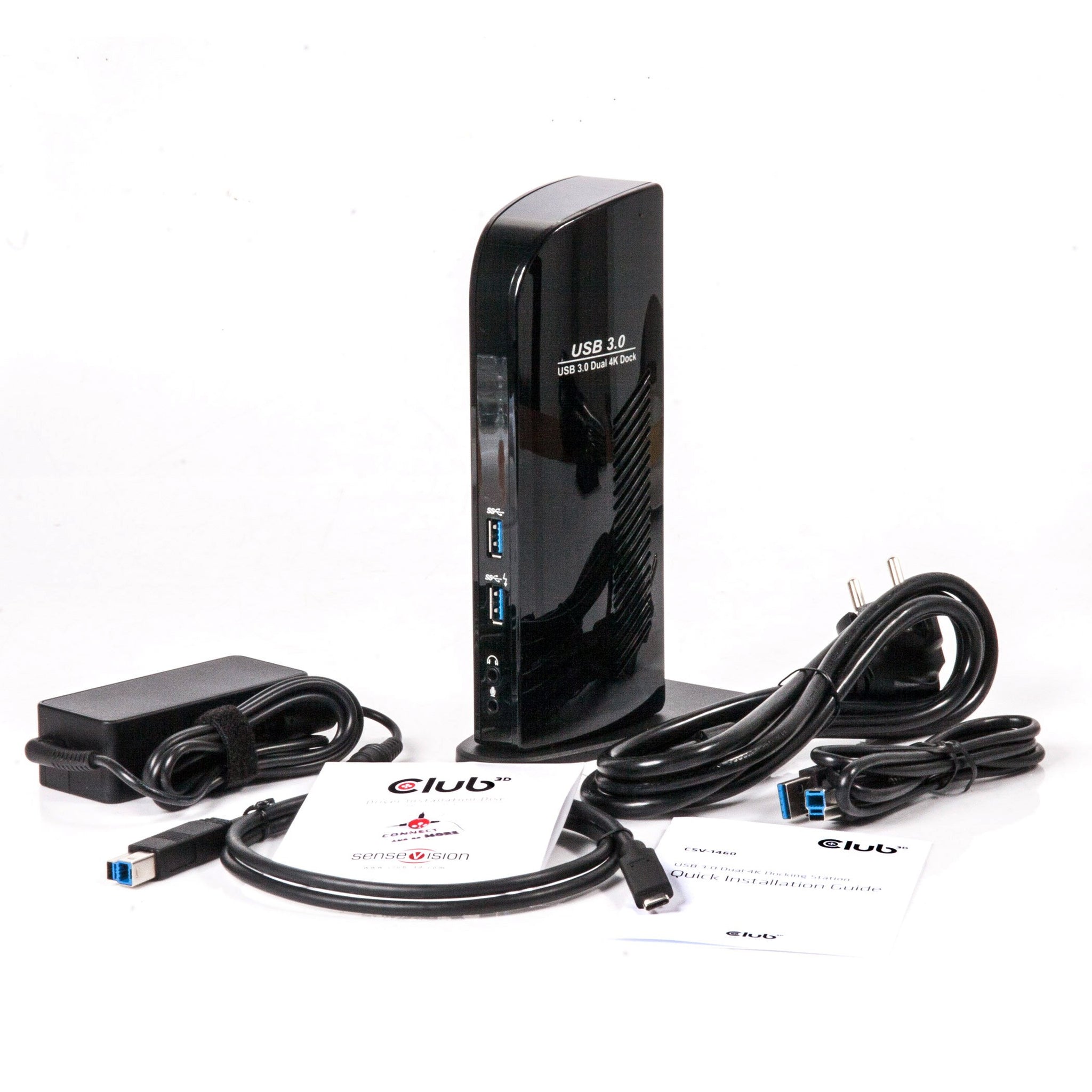 CLUB 3D USB 3.0 Dual DisplayPort 4K Monitor Universal Laptop Docking Station Windows (Dual 4K DisplayPort, Gigabit Ethernet, Audio, 6 USB Ports)