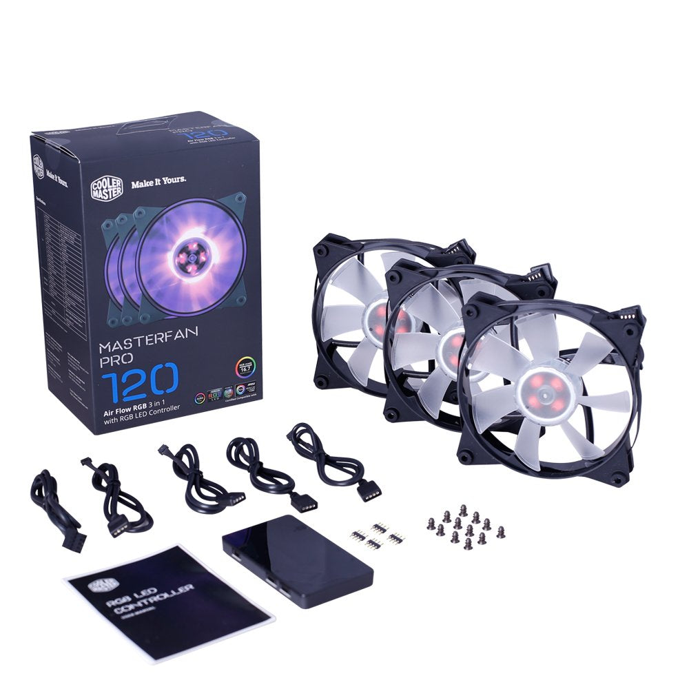 Details: In tackling your case's cooling needs, there is no 'one fan fits all.' each of the three 120mm fans in the master fan Pro Series provides a specific Air cooling solution while all being fitted with multiple layers of our exclusive noise reduction technology and adjustable speed profiles. Put together, they work in Harmony to cool your entire case and its components. Air pressure fans are ideal for funneling concentrated Air short distances at hot components or tight spaces. Ideal for use on the front panel to penetrate mesh wiring and tightly packed HDD.