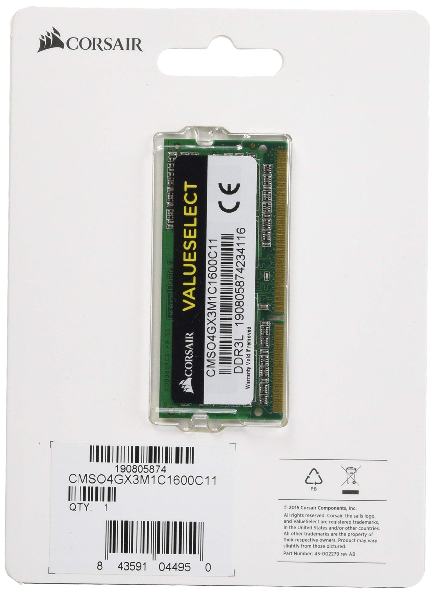 Corsair 4GB (1x4GB) 1600MHz PC3-12800 204-Pin DDR3 SODIMM Laptop Memory (CMSO4GX3M1C1600C11), Green