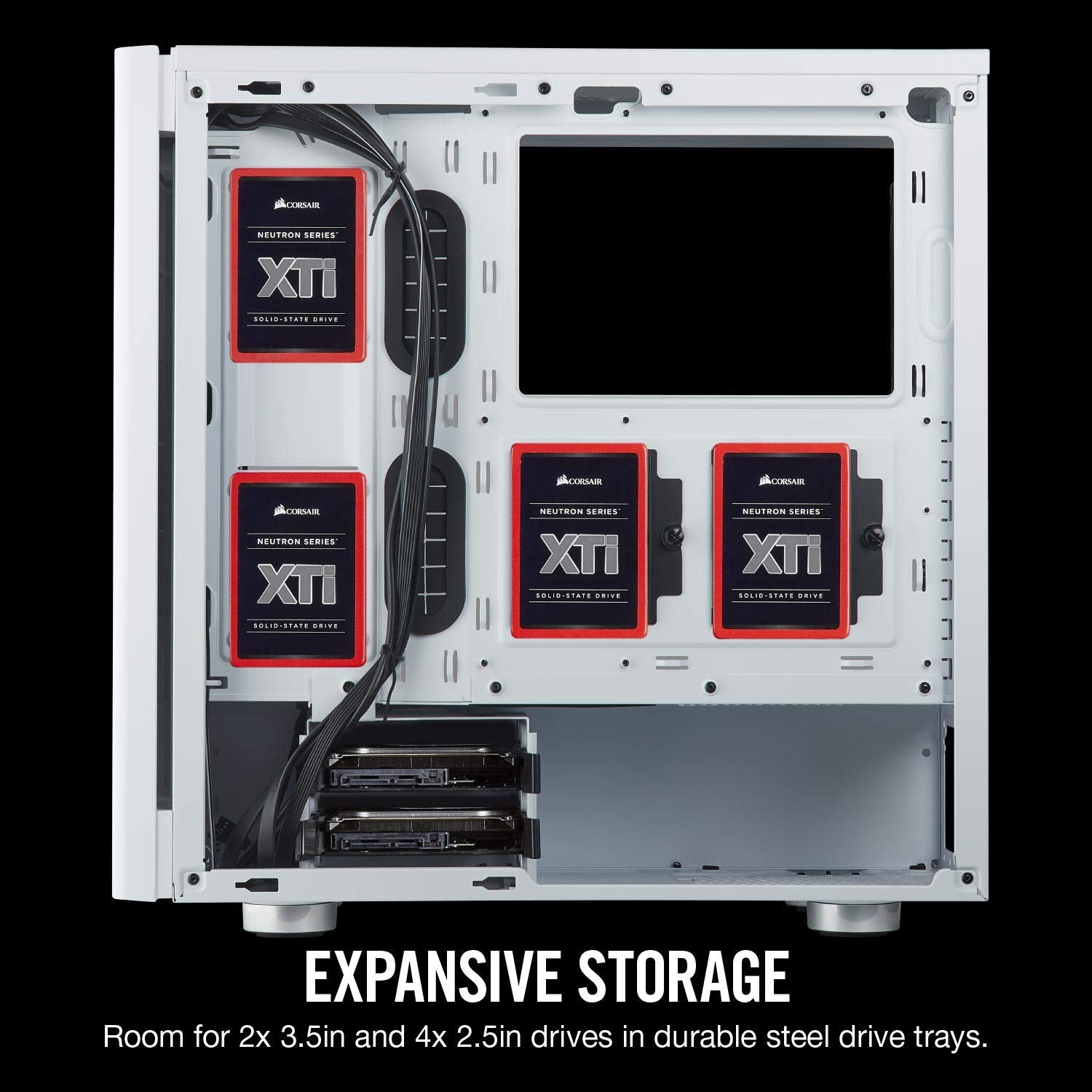 - Rugged-construction steel drive trays provide expansive storage space