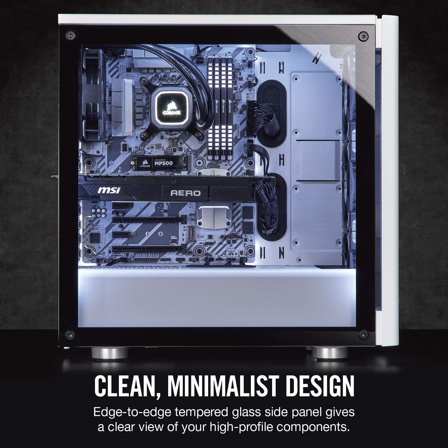 Details: The CORSAIR Carbide Series 275R is a compact mid-tower ATX case that matches minimalist design and a beautiful tempered glass window with a straightforward interior layout and versatile cooling options. Room for up to a 360mm radiator in front, 240mm radiator in the roof, and a 120mm radiator in the rear allows you to fit any CORSAIR Hydro Series cooler or up to six 120mm cooling fans. A dedicated cable routing compartment and rubber grommets enable effortlessly clean builds and Direct Airflow Path() design provides airflow to the hottest components without any interference from drive cages.