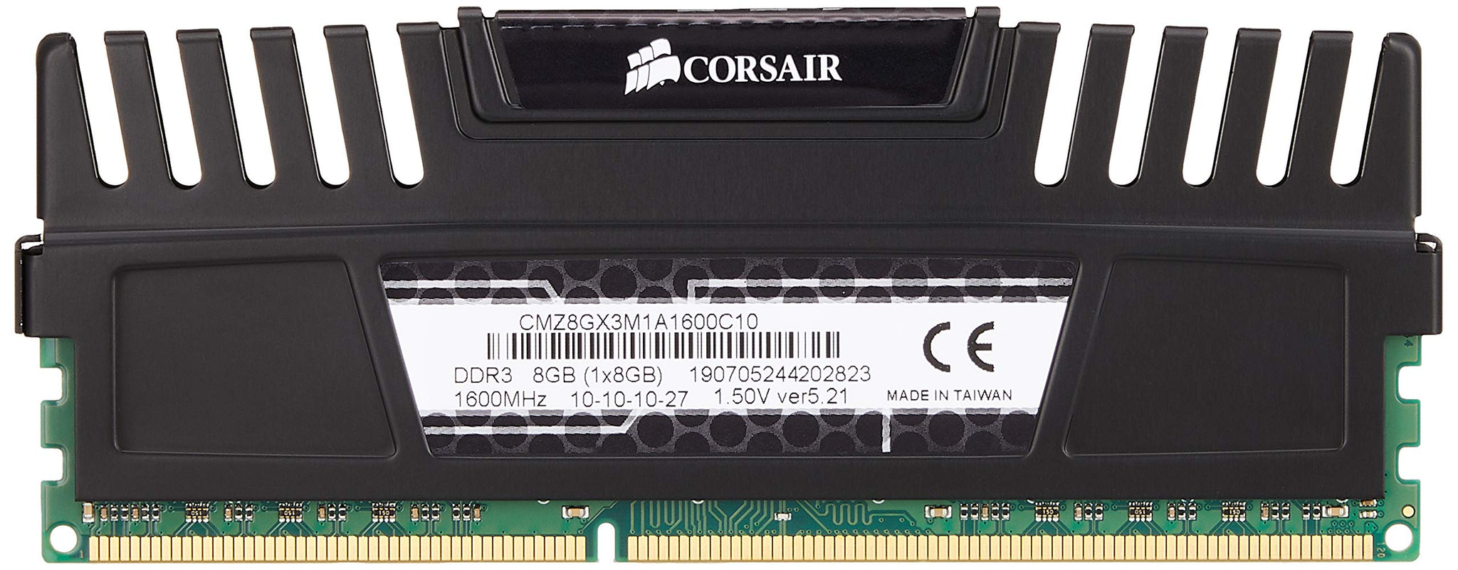 Corsair Vengeance 8GB, 1x8GB, DDR3 1600 MHz PC3 12800 Desktop Memory (CMZ8GX3M1A1600C10)