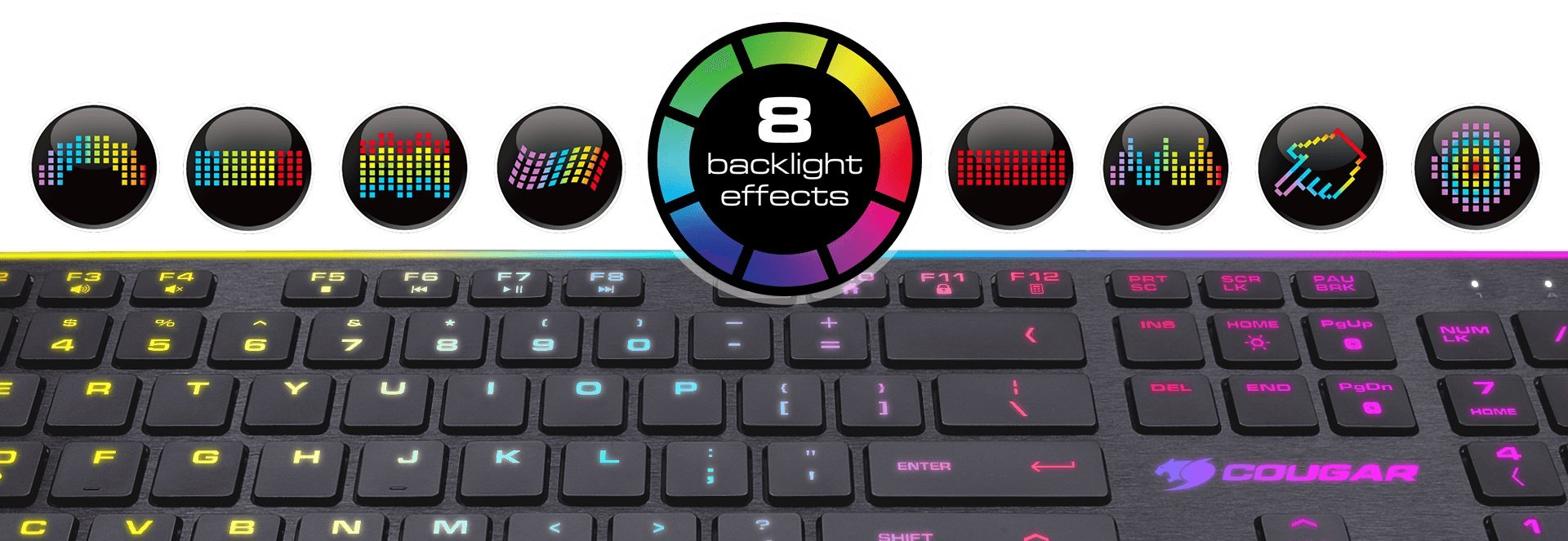 - Customize your gaming experience with your choice of 8 different backlight effects and 8 different colours