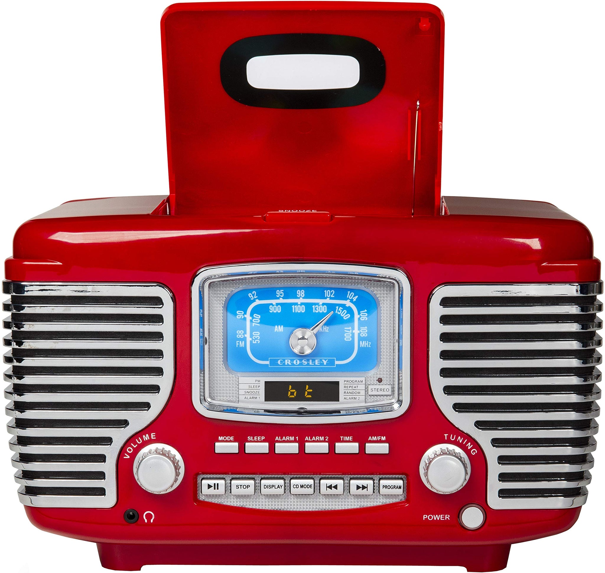 Crosley Corsair Tabletop Am/FM Bluetooth Radio with CD Player and Dual Alarm Clock, Red