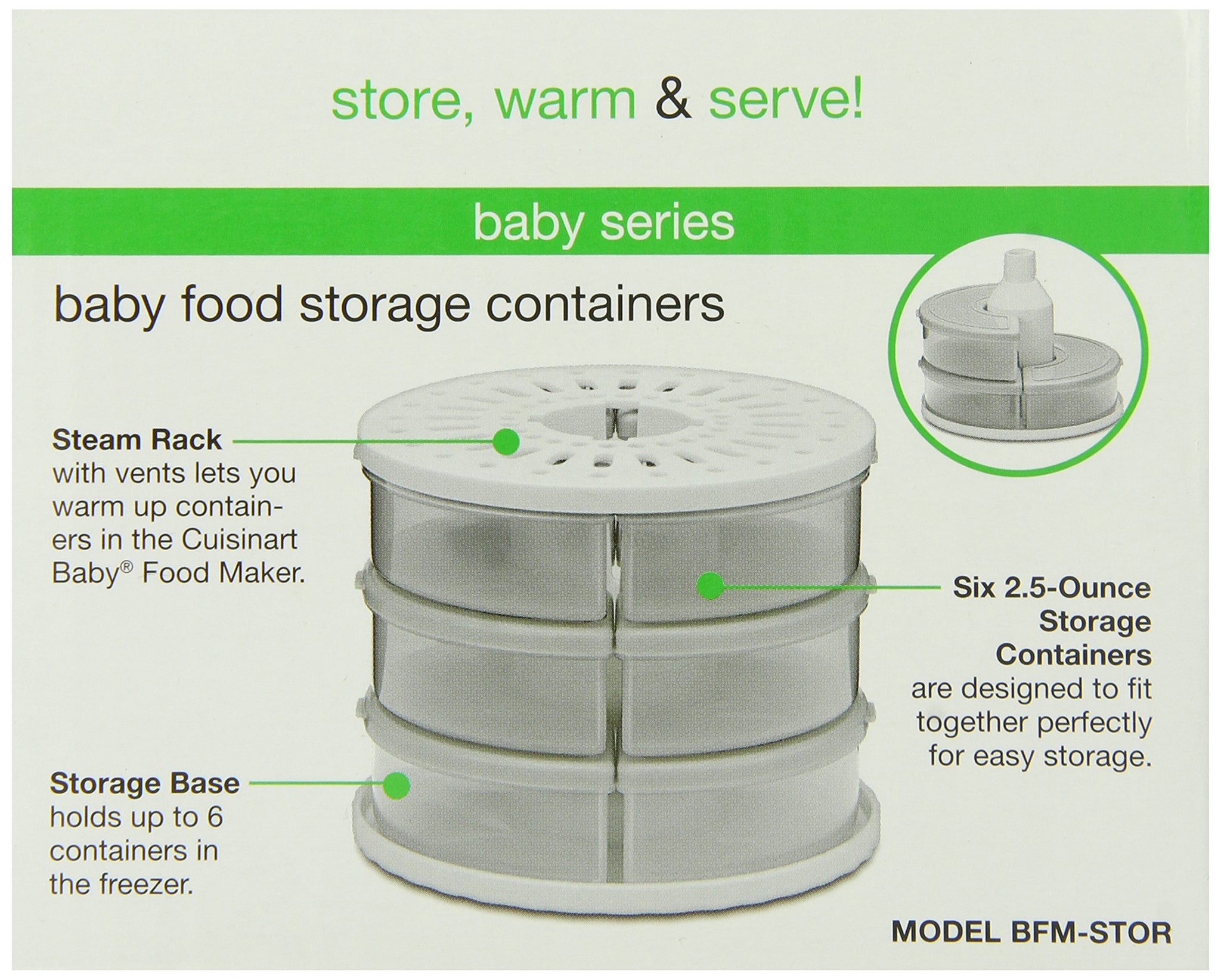 - Steam rack with vents lets you warm up containers in the Cuisinart baby food maker (bfm-1000)