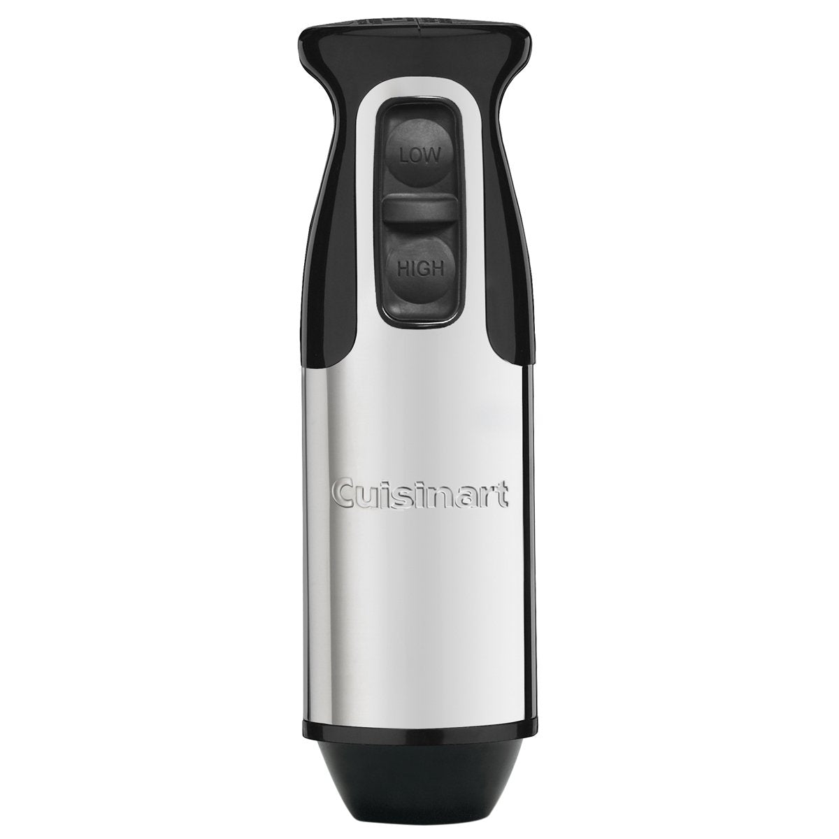 - 200-watt immersion hand blender housed in brushed stainless steel