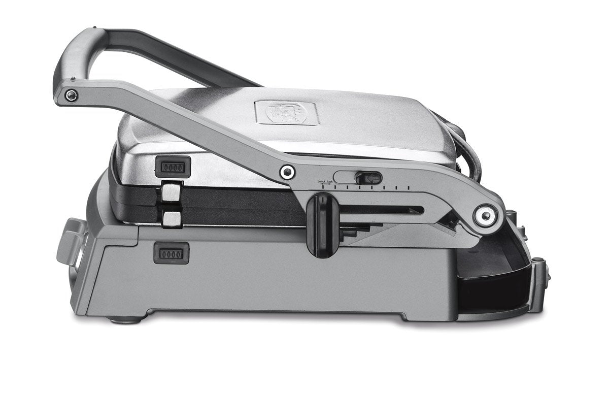 - Six cooking options: contact grill, panini press, full griddle, full grill, half grill/half griddle, top melt.