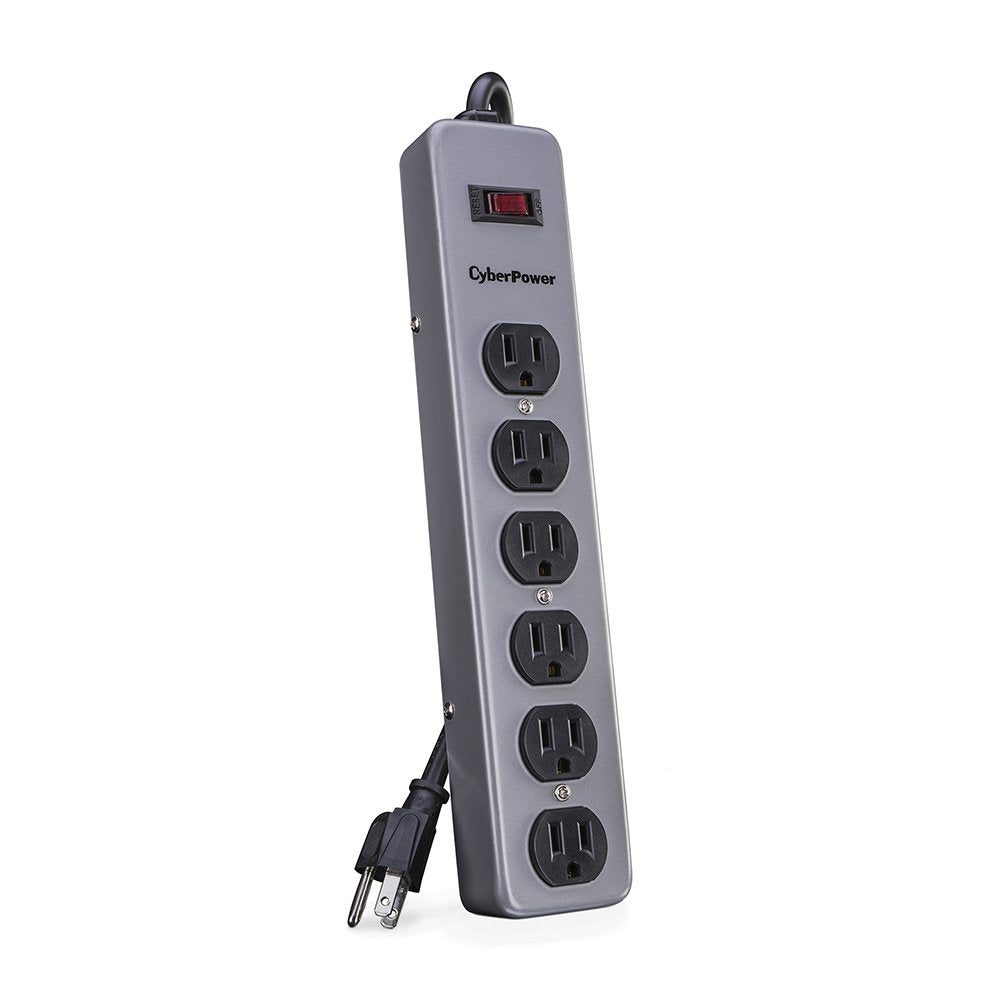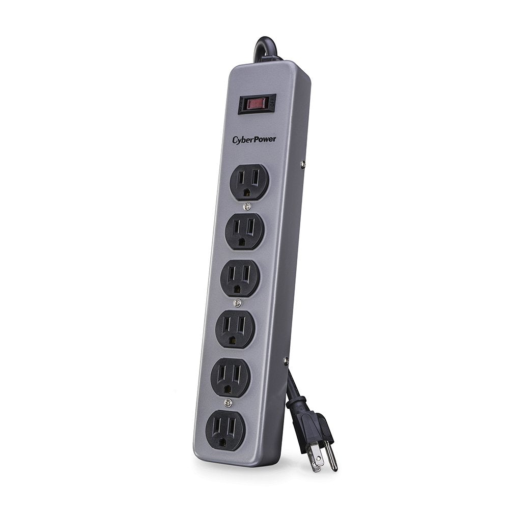 CyberPower B608MGY Essential Surge Protector, 900J/125V, 6 Outlets, Metal Casing, 8ft Power Cord