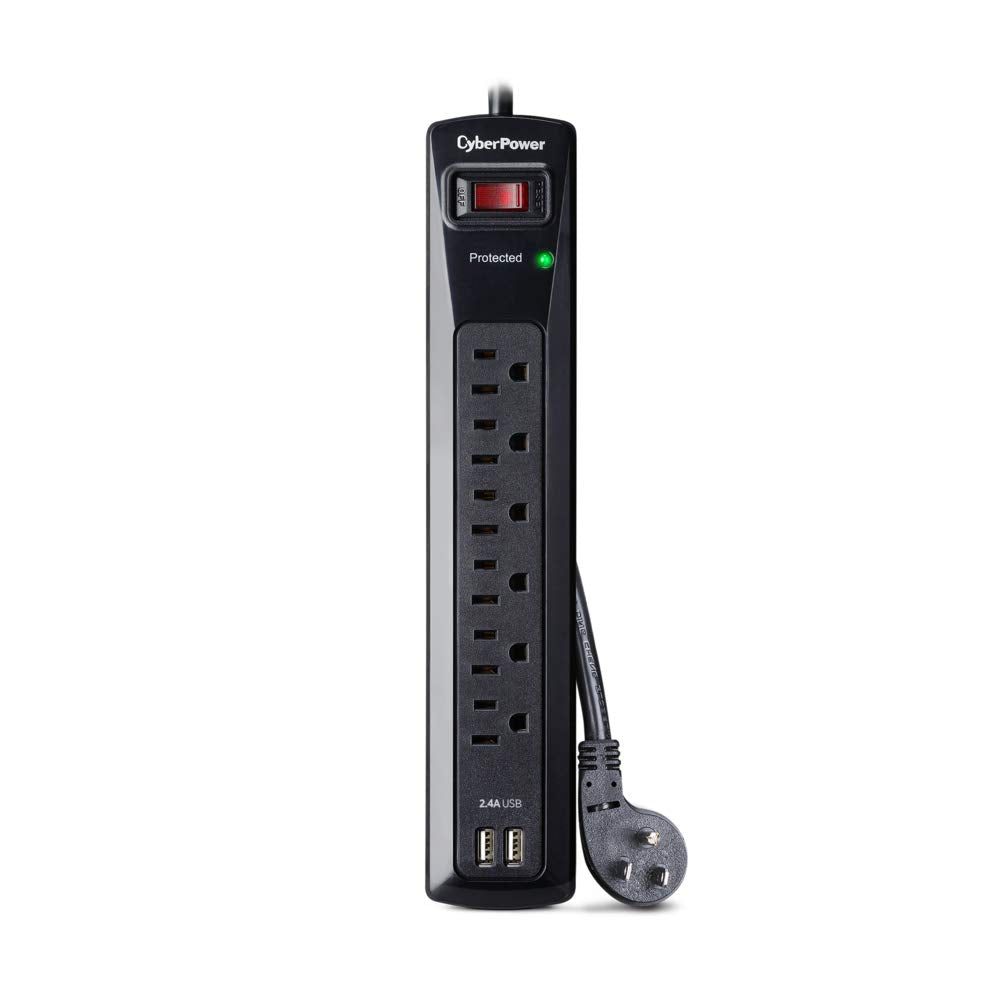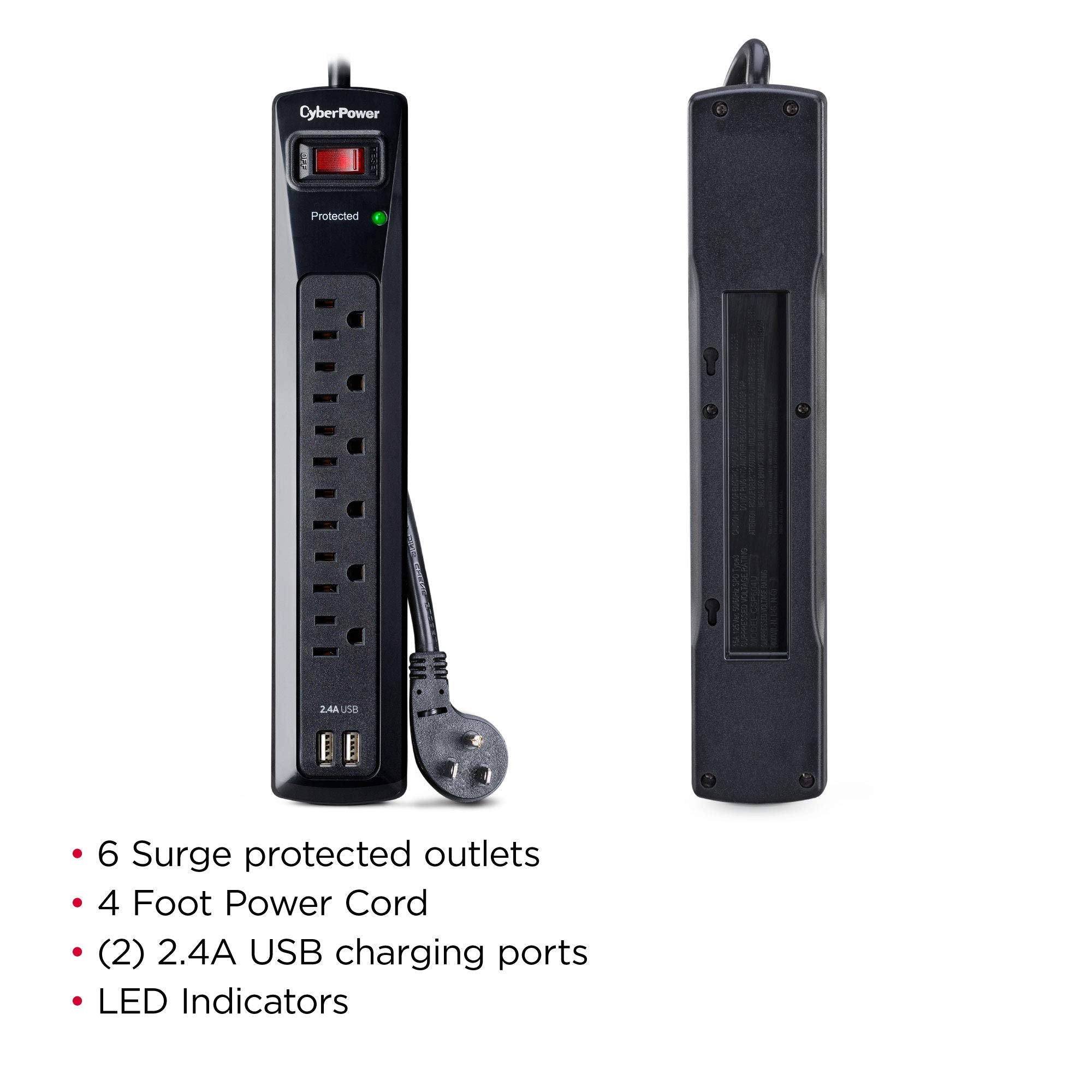CyberPower CSP604U Professional Surge Protector, 1200J/125V, 6 Outlets, 2 USB Charge Ports, 4ft Power Cord