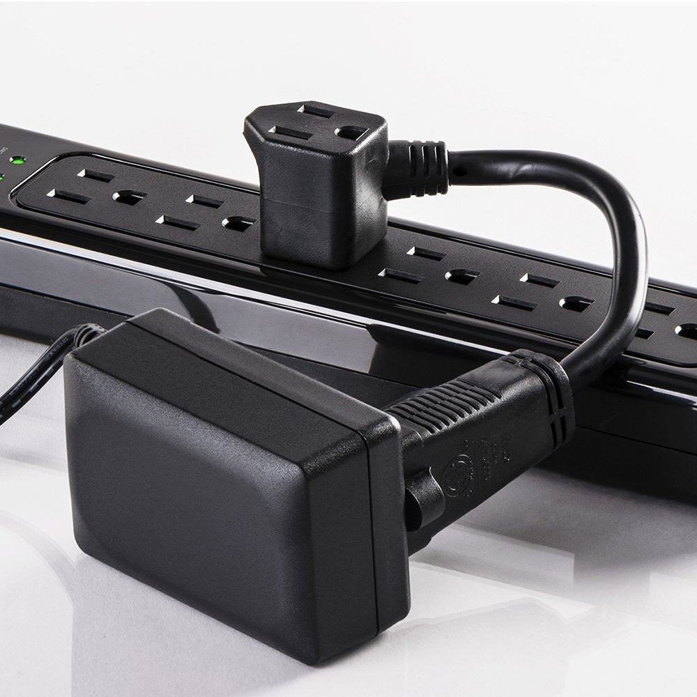 - Frees up space on a power strip, surge protector, or wall tap by making room for bulky ac adapters