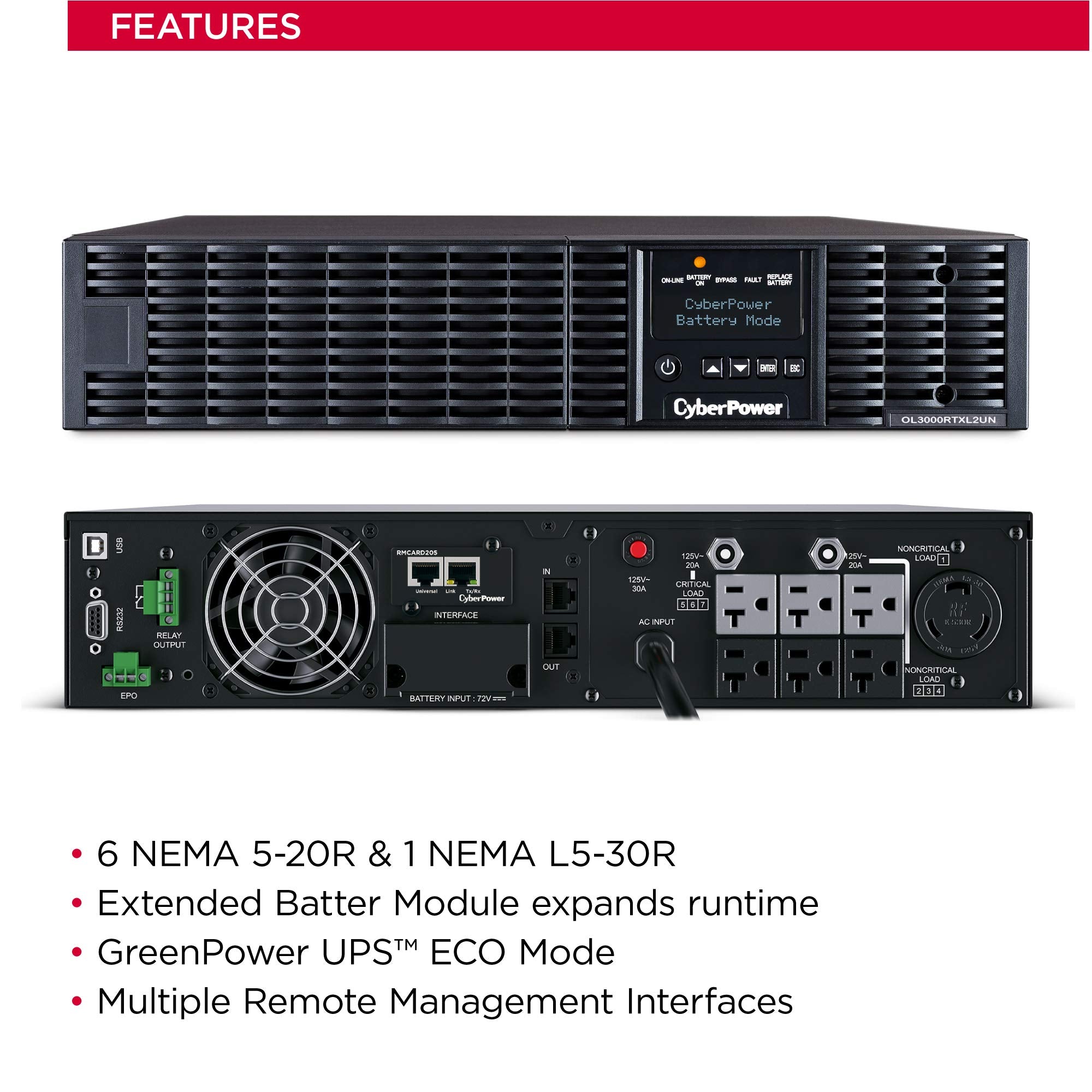 CyberPower OL3000RTXL2UN Smart App Online UPS System, 3000VA/2700W, 7 Outlets, 2U Rack/Tower + Pre-Installed SNMP Card