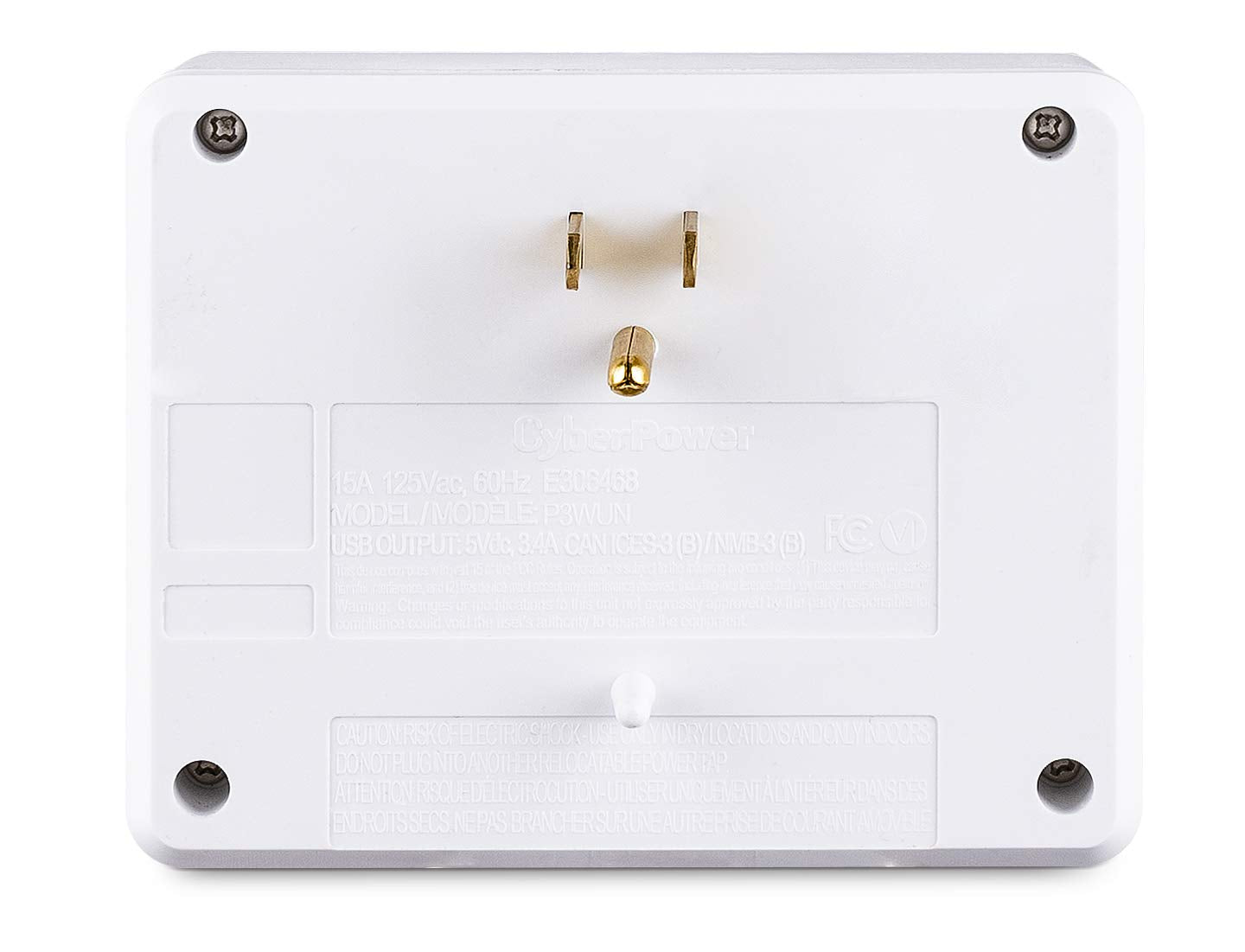 CyberPower P3WU Blue Lighted Power Wall Tap, 3 Outlets, 4 USB Charge Ports