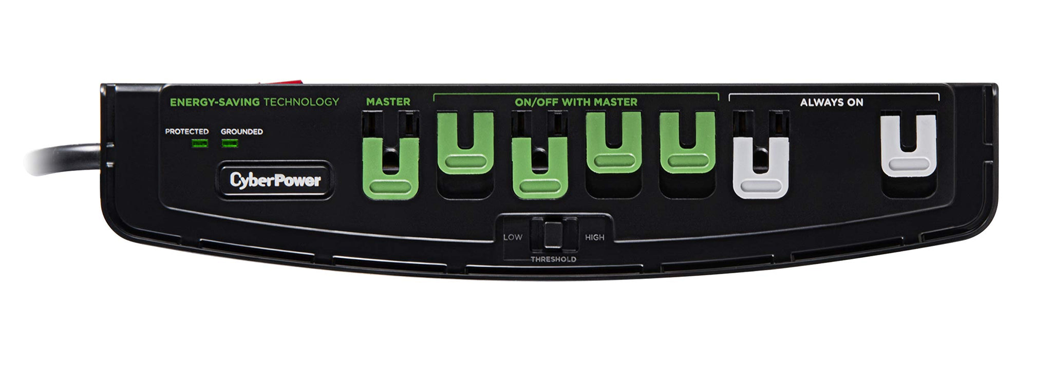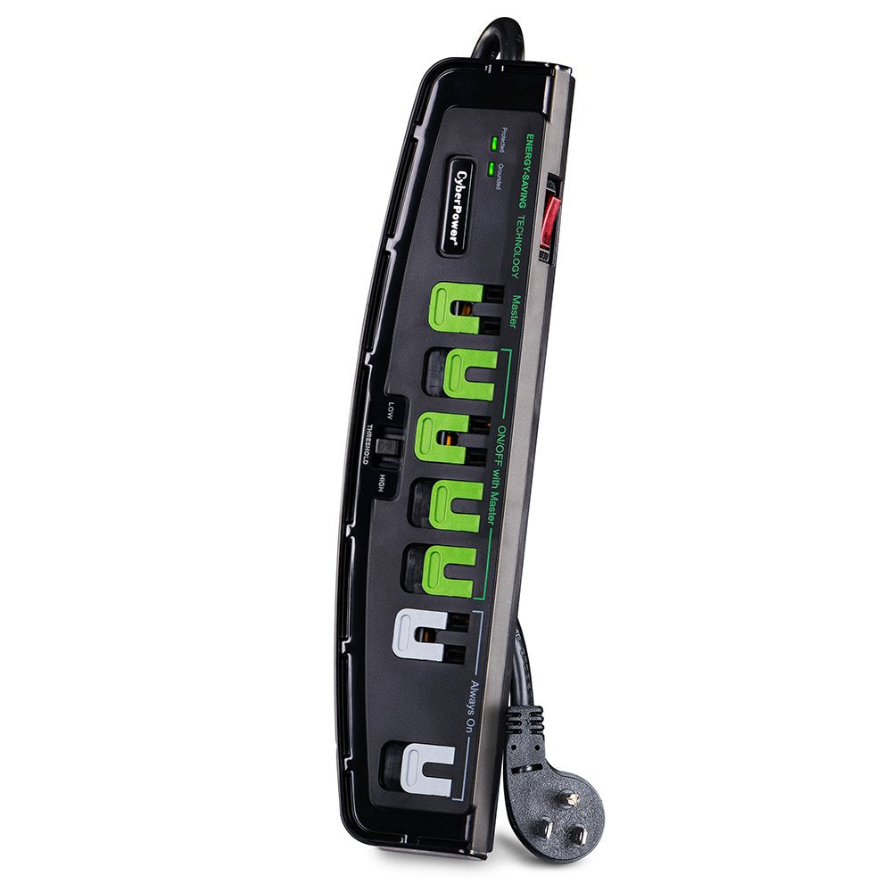 Details: The CyberPower P705G is a commercial and residential surge protector for personal computers, large flat screen TVs, printers, speakers, scanners and home electronics. It offers seven (7) total surge protected outlets and four (4) Energy-Saving outlets designed to turn off up to four connected devices when your TV or PC is shut down or goes into standby mode. The Energy-Saving Threshold Switch keeps the energy-saving feature active when the Master Outlet detects low power consumption. The P705G features 2100 Joules of protection and metal oxide varistor (MOV) technology, which guards the surge suppressor and connected electronics against line abnormalities and lightning surges. EMI/RFI filters block unwanted line noise from all connected electronics. Our Flame Resistant Technology uses an ABS housing that provides a high level of protection (UL 94 Recognized V-0 class material). A Limited Lifetime Warranty ensures that this surge suppressor has passed our highest quality standards in design, assembly, material and workmanship; further protection is offered by a $250,000 Connected Equipment Guarantee.
