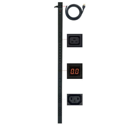 - 200 - 230V, 20A Derated to 16A, 50Hz/60Hz Metered Power Distribution Unit with NEMA L6-20P plug with 10 foot power cord