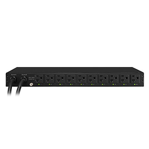 - 120V 20a switched ATS PDU with 10 NEMA 5-20r outlets and dual NEMA l5-20p 20a 120v twist-lock input connections