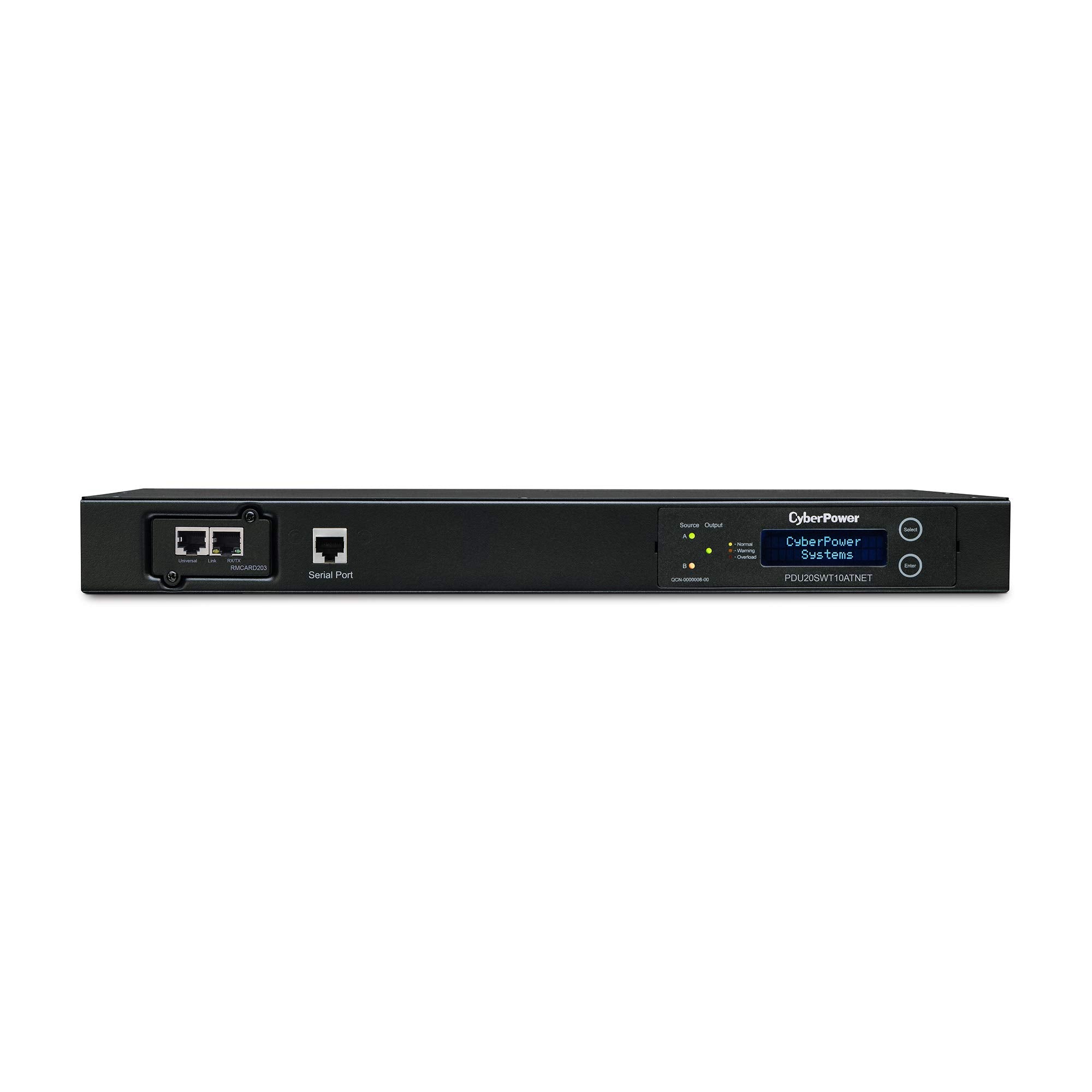 CyberPower PDU20SWT10ATNET Switched ATS PDU, 100-120V/20A, 10 Outlets, 1U Rackmount, Black