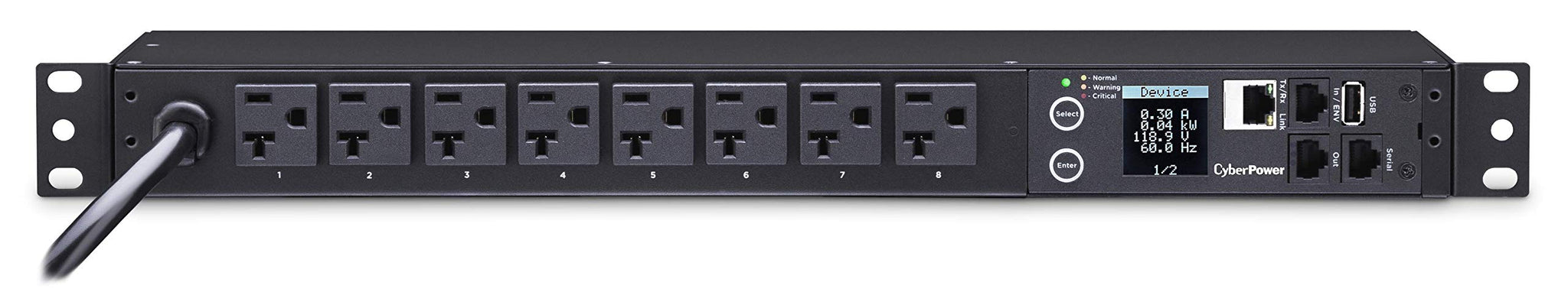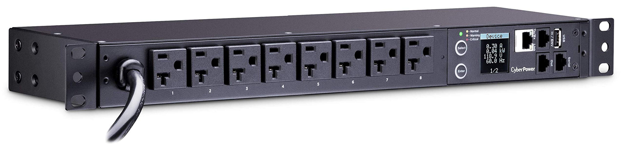 CyberPower PDU31002 Monitored PDU, 120V/20A, 8 Outlets, 1U Rackmount, Black