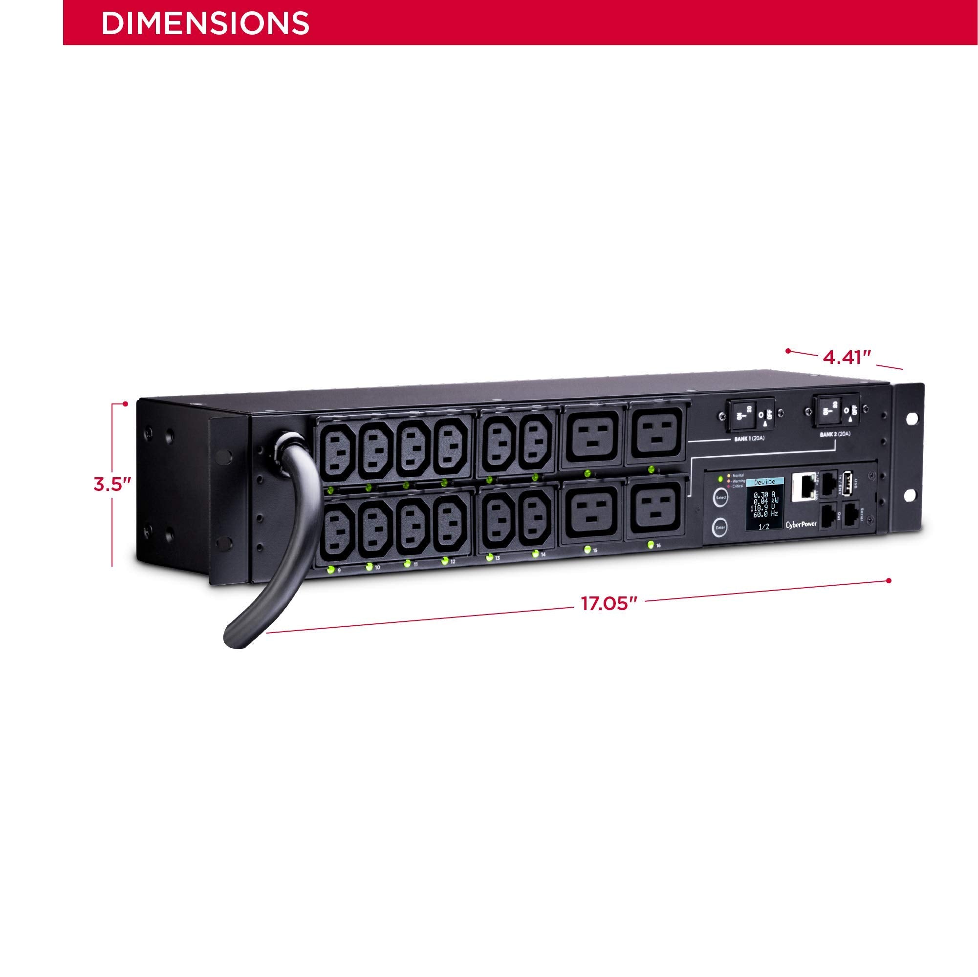 - Provides outlet-level power monitoring and individual outlet control for connected equipment