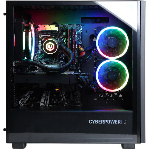 CyberPowerPC SLC10000CPGV7 Gamer Supreme Liquid Cool Desktop Computer is a ready-to-use gaming system with the performance and aesthetics to match. Specs-wise, it's equipped with an 11th Gen 3.6 GHz Intel Core i7-11700KF 8-Core processor, 16GB of DDR4 RAM, and a 1TB M.2 NVMe PCIe SSD. The dedicated NVIDIA GeForce RTX 3060 graphics card features 12GB of GDDR6 VRAM and allows you to take full advantage of real-time ray tracing and DLSS. With these combined, this system can quickly boot and load applications as well as play graphically demanding games at 1080p. Other integrated features include Wi-Fi 5, Gigabit Ethernet, HDMI and DisplayPort outputs, and multiple USB and audio ports. The operating system installed is Windows 10 Home and it comes with an RGB USB keyboard and a mouse so you can get started as soon as possible; you'll just need a monitor (sold separately).
