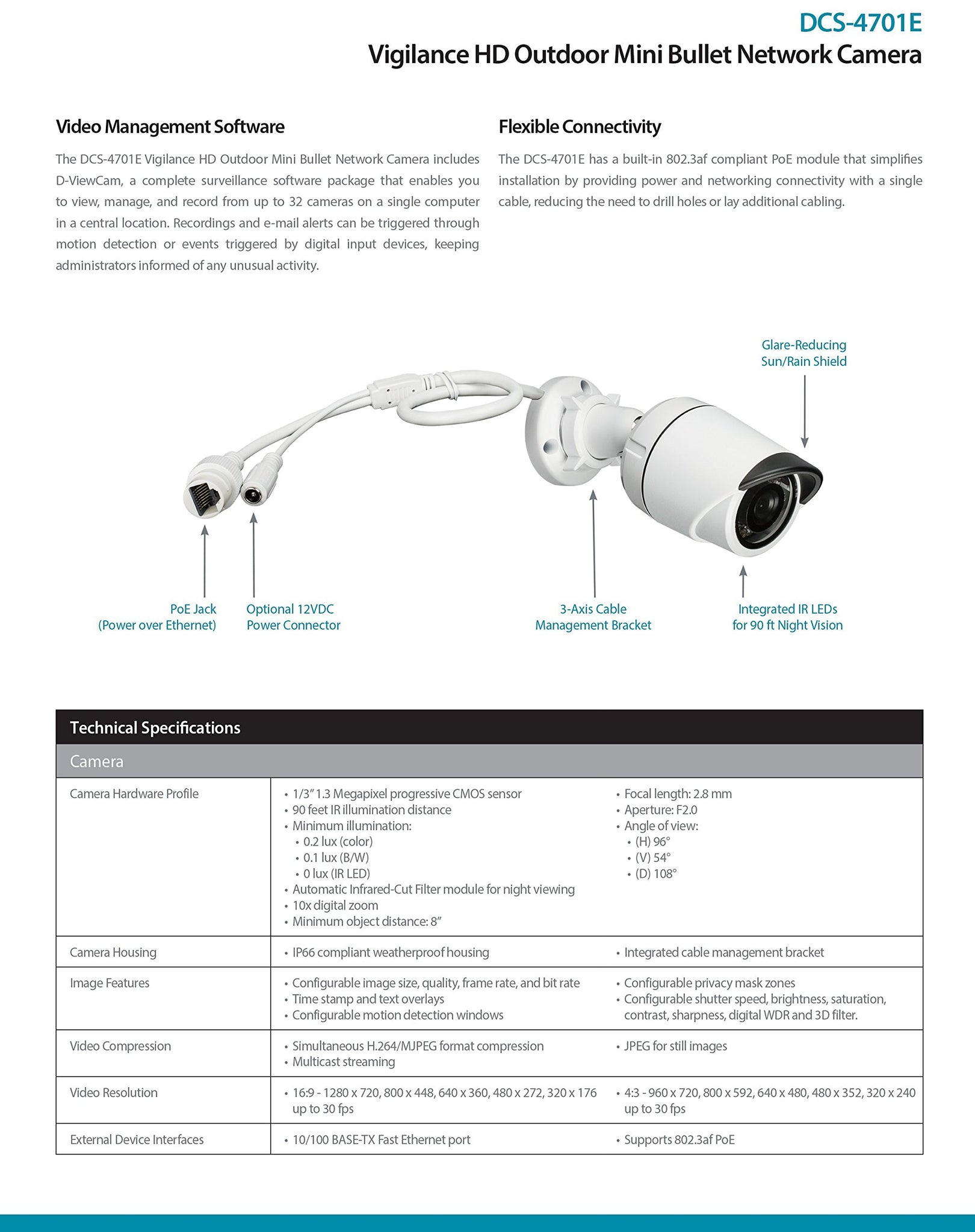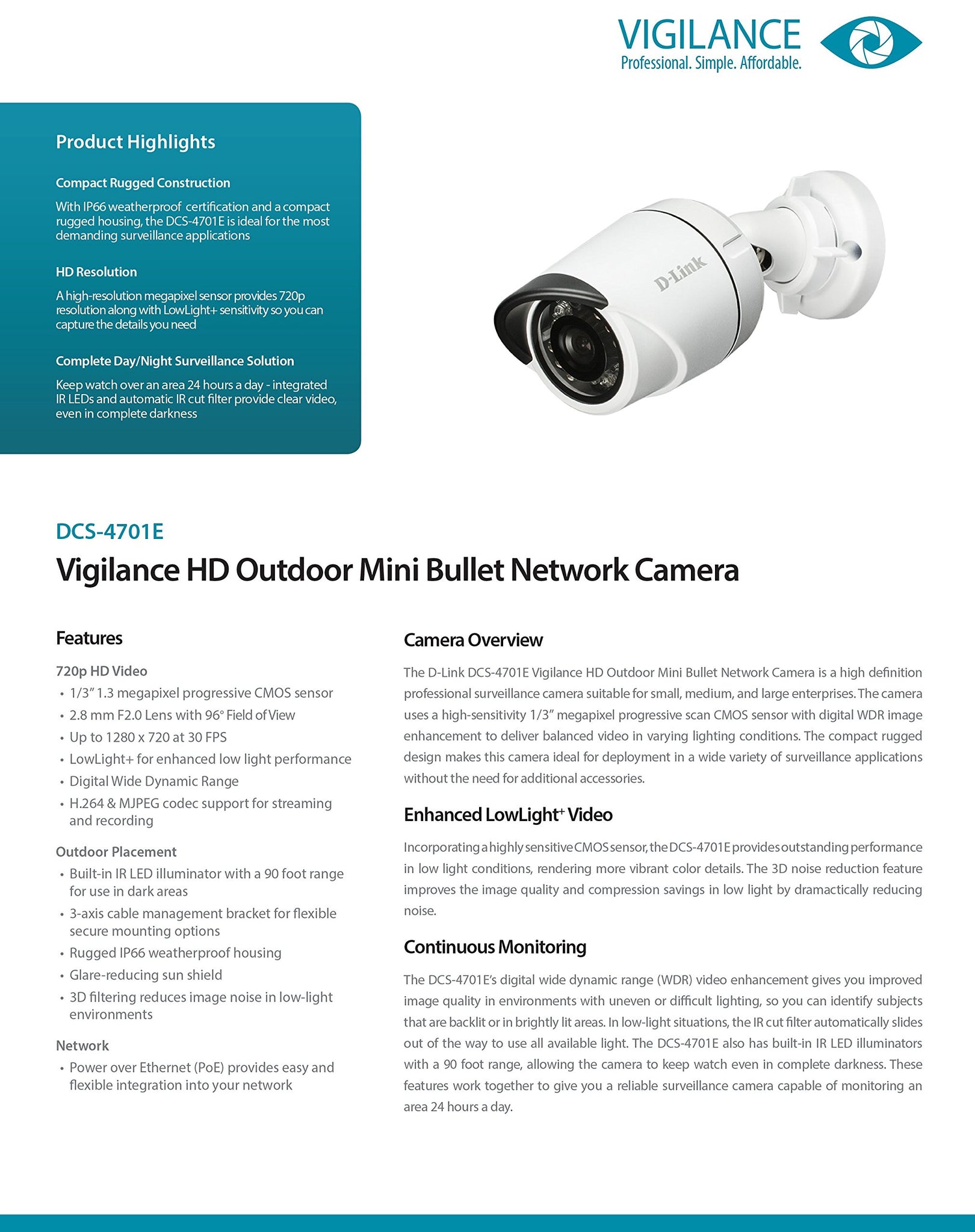 D-LINK 1.3MP HD Outdoor Mini Bullet PoE IP Camera (DCS-4701E)