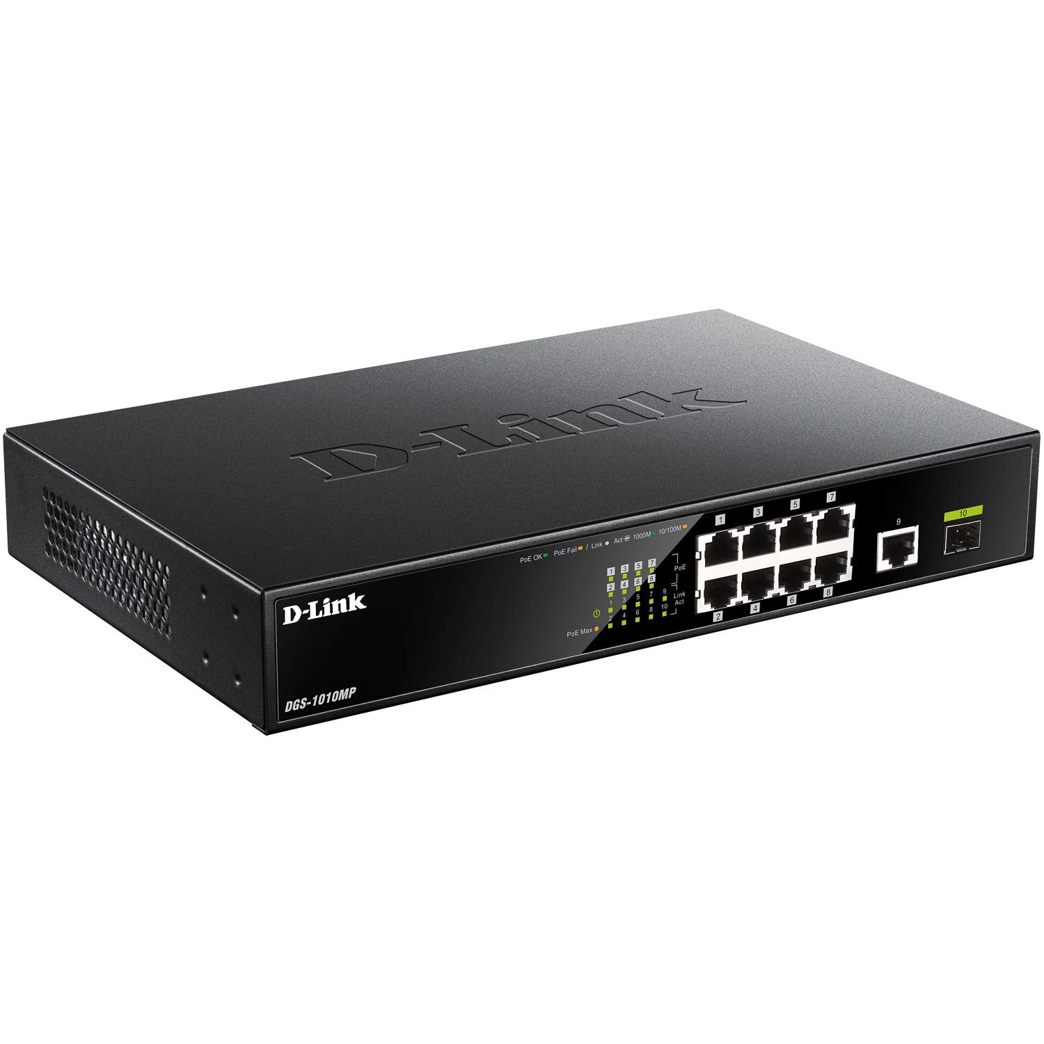 D-Link 8-Port PoE Desktop Switch with 1 GB Port and 1 SFP Port - (DGS-1010MP)