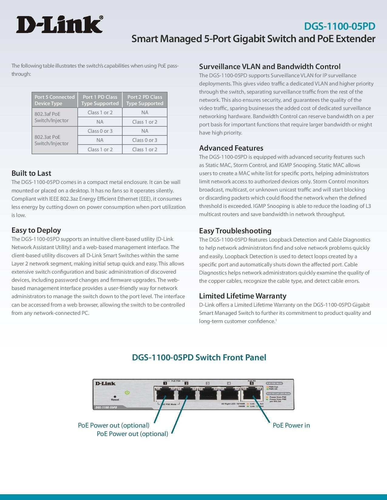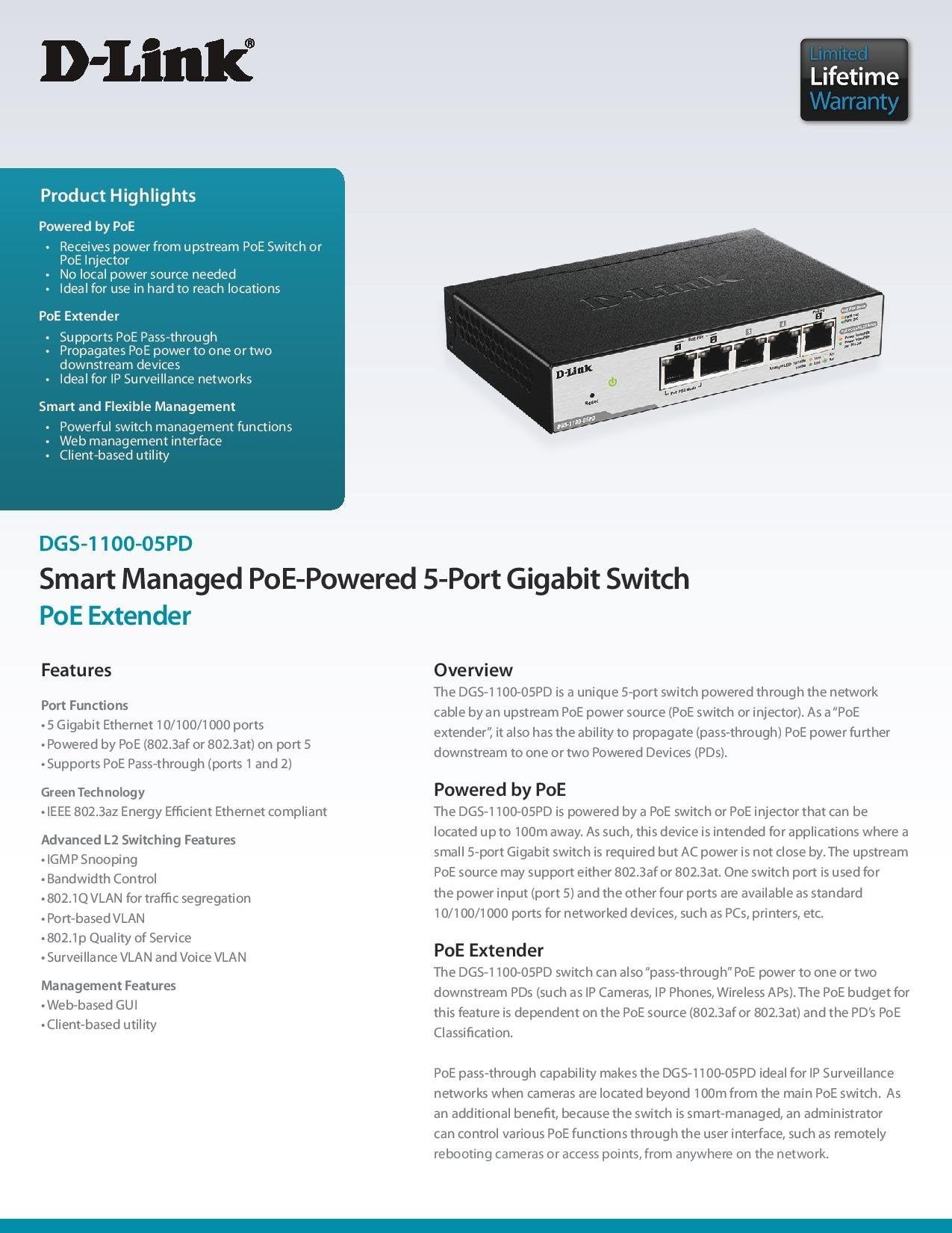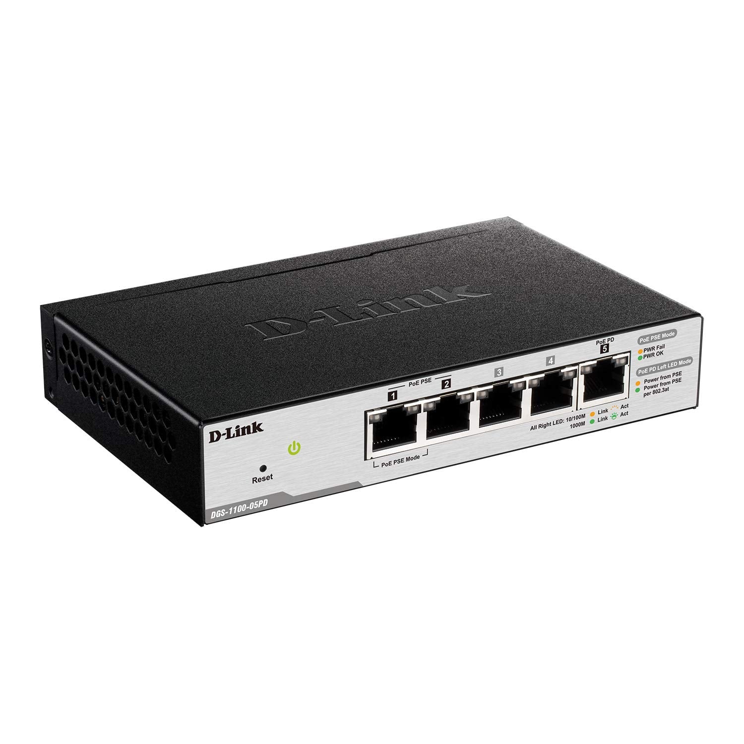 D-Link DGS-1100-05PD Smart Managed 5-Port Gigabit PoE Powered Desktop Switch