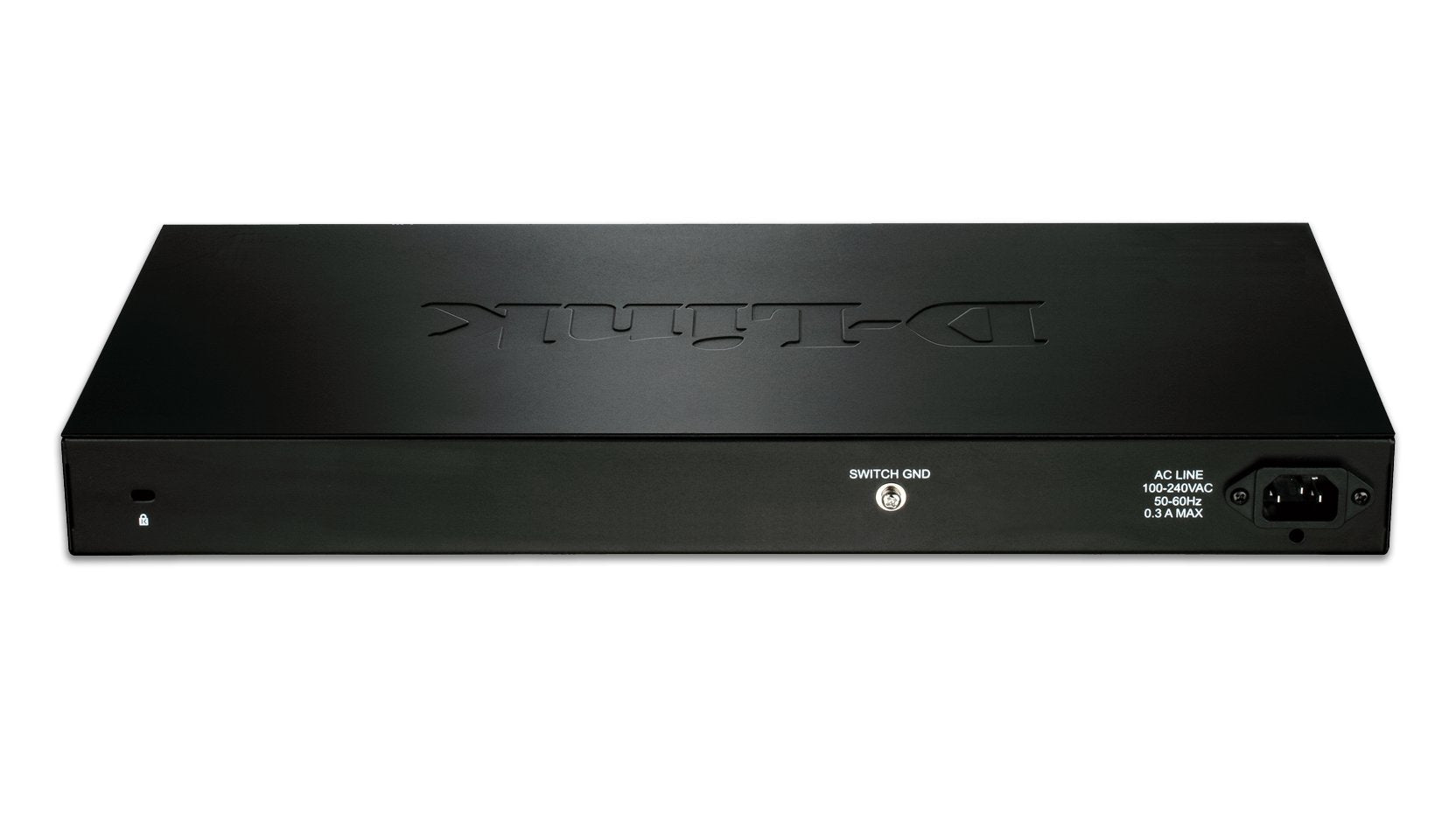 - Security features include Access Control List (ACL), 802.1X / RADIUS, ARP Spoofing Prevention, and D-Link Safeguard Engine