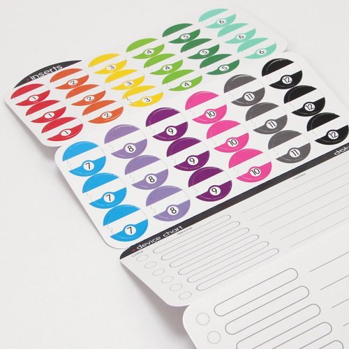 - 72 color-coded Stickers to match colors and numbers on 36 Identifier Inserts
