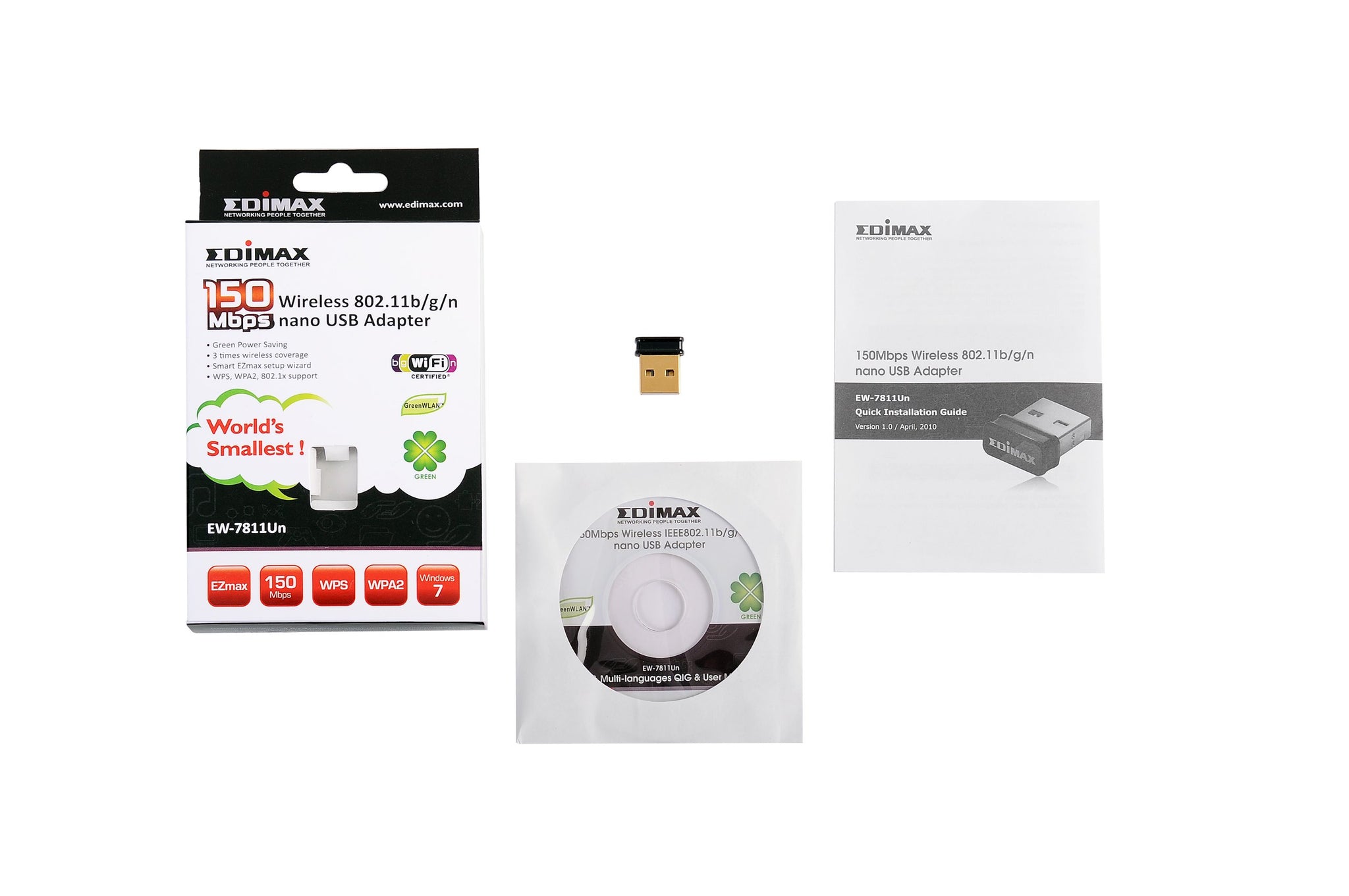 Details: EDIMAX EW-7811Un IEEE 802.11b/g/n Wireless Mini Nano Size USB Adapter, Up to 150Mbps Data Rates, with 16 languages EZmax setup wizard for easy installation.System Requirements: Windows 7/Vista/XP, Mac OS, Linux.