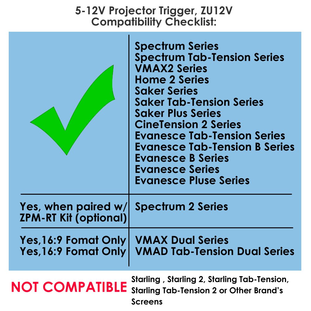 - Compatible with specific version 2.0 Elite Screens Electric Screens Only. *Not compatible with the following series: Starling, Starling Tab-Tension, Starling Tab-Tension 2, or Other Branded Screens.