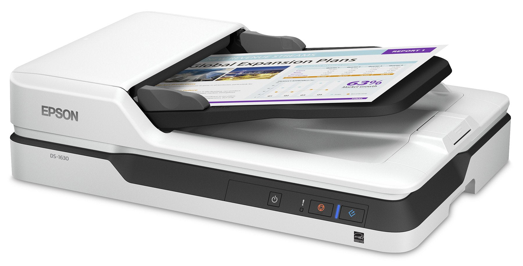 Details: the Affordable, Versatile Flatbed Scanner With Adf For More Productivity Streamline Workflows And Increase Productivity With The Ds-1630 Document Scanner. Combining A Flatbed Scanner With The Convenience Of A 50-page Adf, This Affordable Solution Is Ideal For Virtually Any Task. Quickly Scan Stacks Of Documents Up To 8.5 X 14. Or, Use The Flatbed For Ids, Passports, Booklets, Fragile Items And More. Offering Speeds Up To 25 Ppm1, Plus Auto-duplexing, The Ds-1630 Also Includes Twain And Isis Drivers For Seamless Integration With Existing Document Management Systems. Scan To A Pc, Mac Or Online Storage Accounts2 With One Touch. Plus, The Included Software Suite Features Epson Document Capture, Abbyy Finereader3 And Presto! Bizcard Reader.