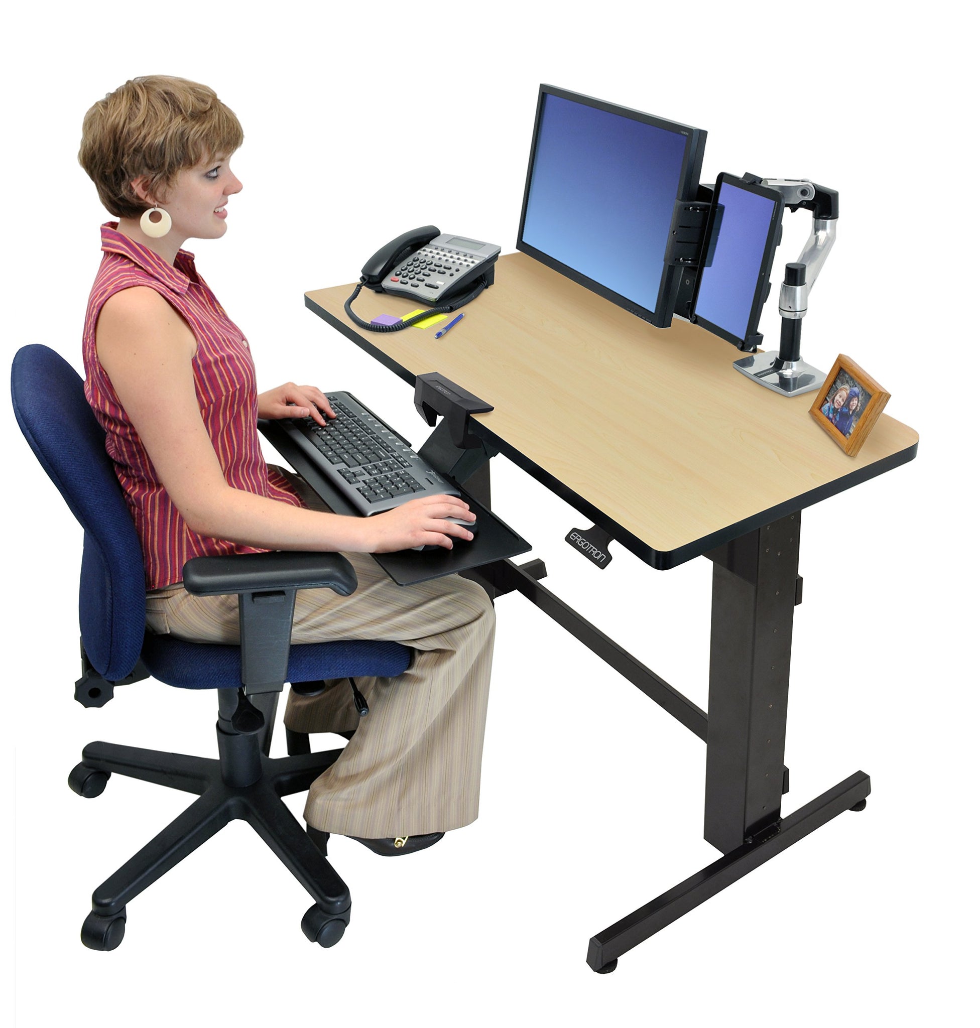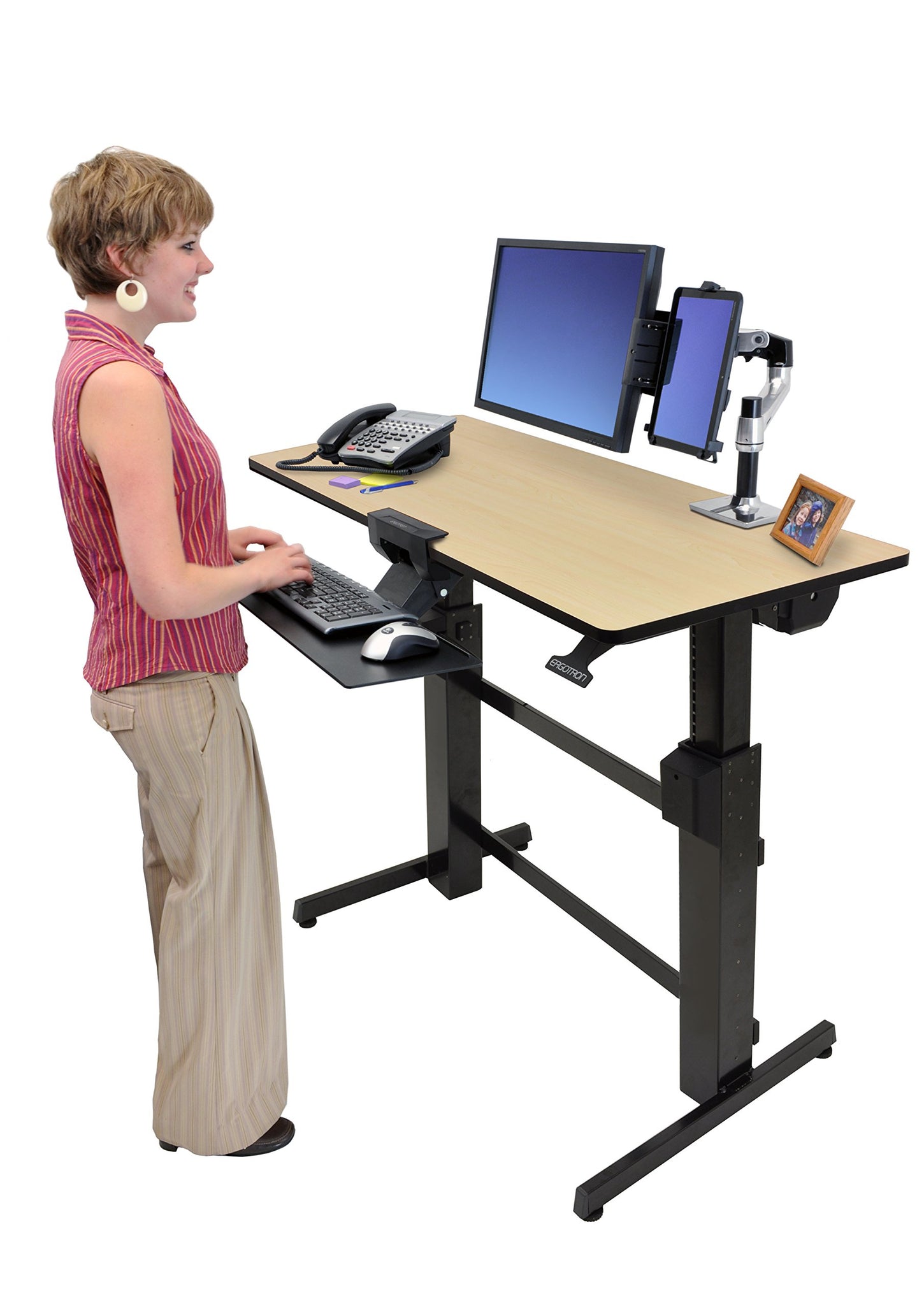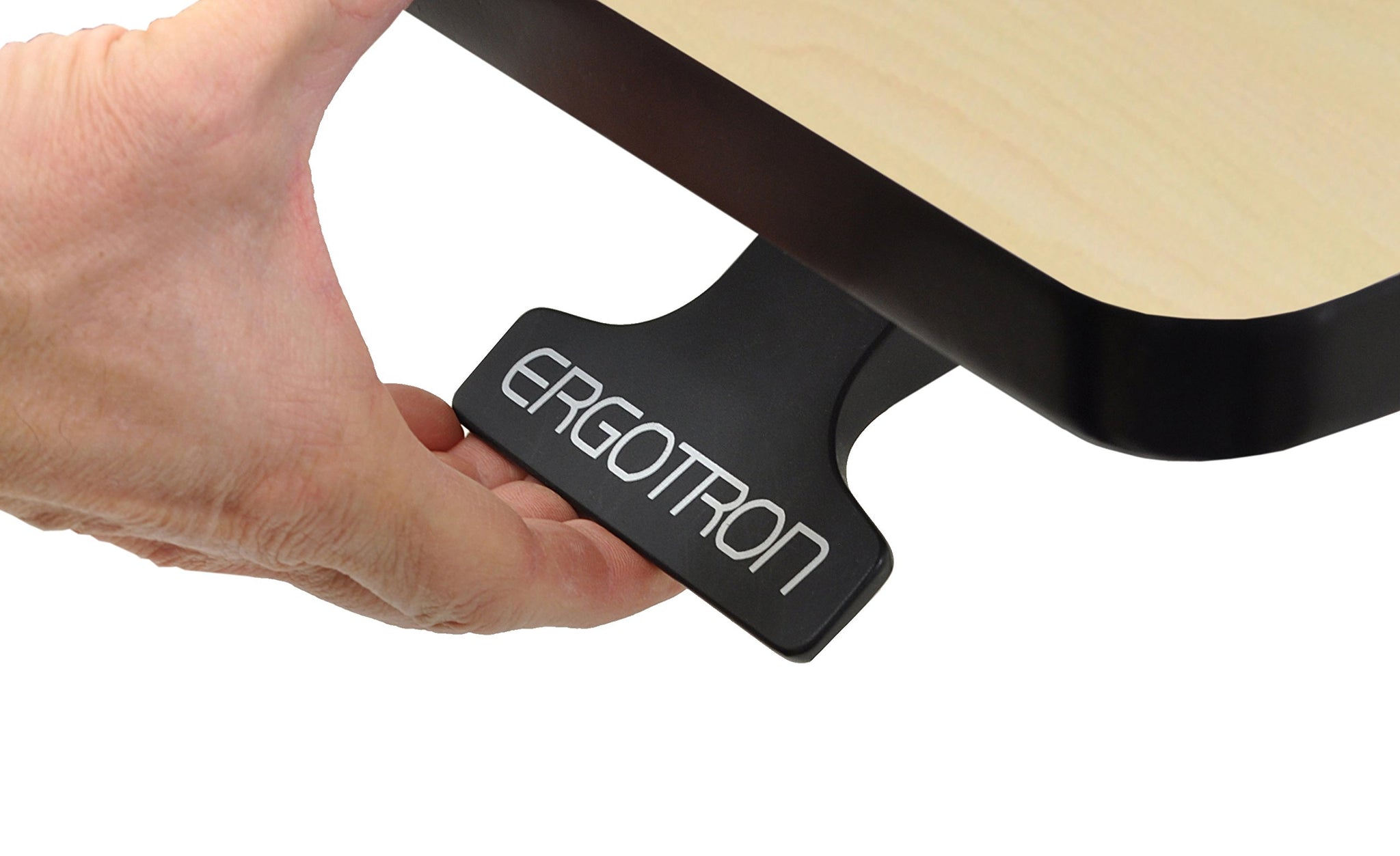Details: Prolonged computing comfort is yours with this height-adjustable ergonomic desk. Patented Constant Force (CF) technology provides 20" of effortless lift, allowing you to move from a sitting to a standing position whenever you like. Safe and easy to use with simple installation and operation. Robust 65-lb. weight capacity; accommodates multiple displays, keyboards, books, phones, etc. Pre-drilled to accept the Ergotron NeoFlex Underdesk Keyboard Arm; add an Ergotron LX LCD Arm as needed to accommodate individual workflows. Overall Width: 47 5/8"; Overall Depth: 23 1/2"; Overall Height: 30 5/8" to 50 5/8"; Color(s): Birch/Black.
