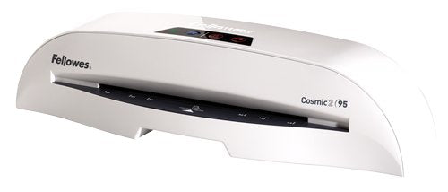 Details: Fellowes, the leader in laminating products, delivers the best performance and quality to preserve and protect important documents. Fellowes laminators can be used in the home, office, or classroom for creating quick, long-lasting professional and fun projects. You can make menus, signs and posters durable. Quickly and easily laminate photos, business cards, picture cards, and certificates. Create bookmarks, calendars, flash cards, or jewelry with ease. Fellowes laminators feature robust roller systems for quick, consistent lamination and quality throughput at high speeds. By providing the best laminator technology we ensure smooth, high quality laminating results. The Fellowes Cosmic 2 95 Pouch Laminator is a user-friendly personal laminating machine perfect for occasional use in the home or small office. The Cosmic 2 95 is designed for use with 3mil laminating pouches for documents or photos, however, it will handle up to 5mil thick pouches for index card size or smaller. The 9.5 inch throat size will accept multiple document sizes, and a document carrier is not required. Featuring HeatGuard Technology that keeps the heat inside so the laminator is cool to the touch, and an anti-jam release lever, you'll be assured the Cosmic 2 is safe to use for you and your materials. It heats up in 5 minutes, laminates 12 inches per minute, and has 3 temperature settings, including for cold lamination. The Fellowes Cosmic 2 95 is sure to meet your occasional light laminating needs with fantastic results.