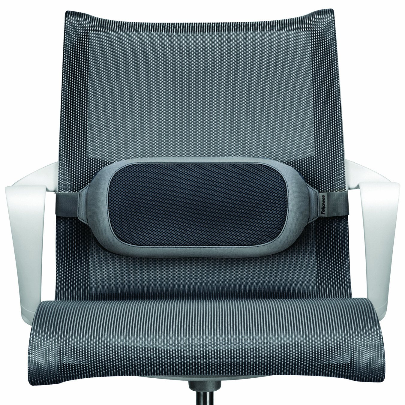 Help reduce back pain and strain when working at home with the Fellowes I-Spire Series Lumbar Cushion. This cushion supports your lower back while you're seated so you can work more comfortably and productively. It's made of breathable mesh fabric and attaches securely to standard-size chairs with an adjustable strap and durable buckle.