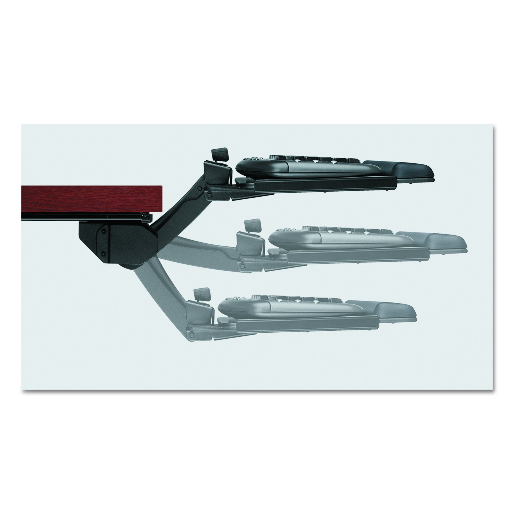 - Fully adjustable unit moves keyboard and mouse off the desktop to save workspace