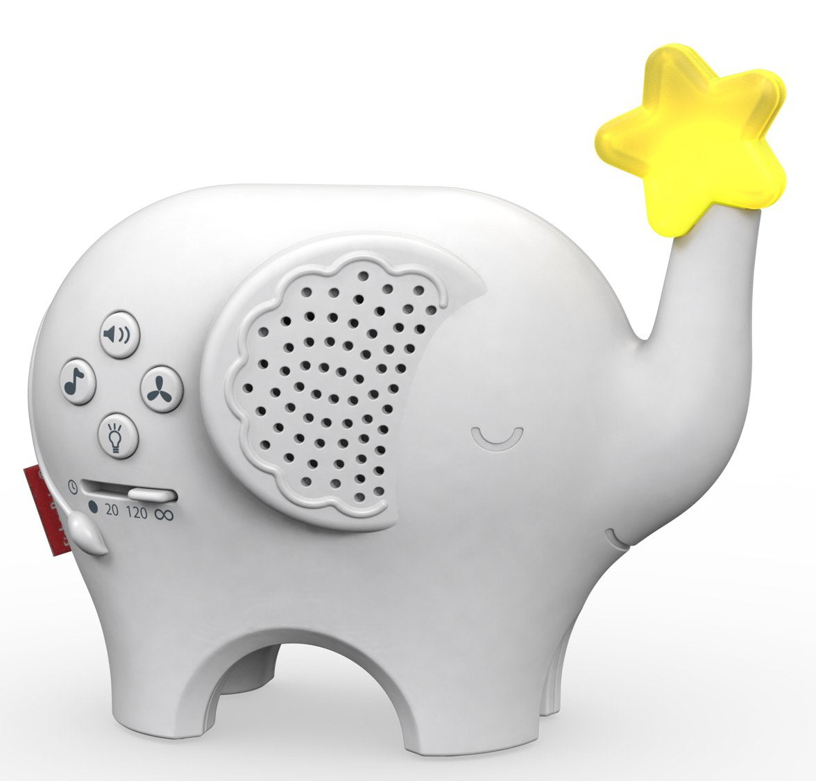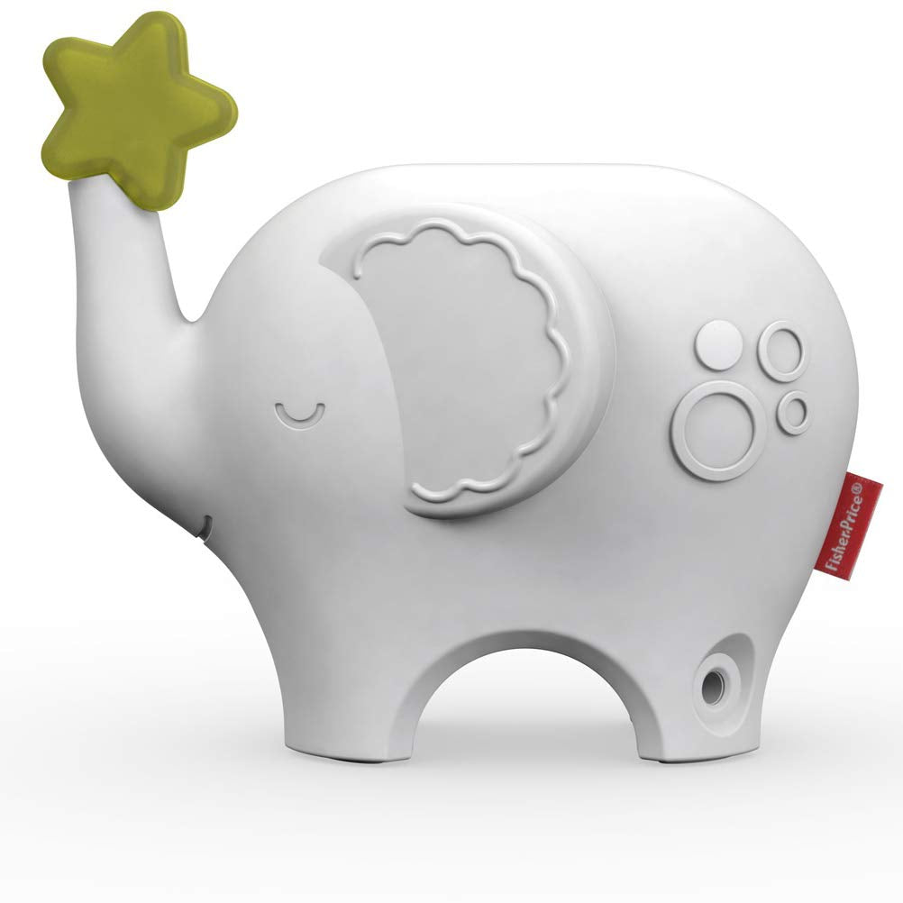This dresser-top soother helps you set a serene mood with 4 soothing sound options - white noise, ocean, rain or nature sounds. Or select from 20 classic songs & lullabies like the Brahms Waltz and "Mary Had a Little Lamb." Turn on the soft-glowing star night light for added comfort. You can even customize the options the gentle music and sounds can play for 20 minutes, 120 minutes, or all night long. With tons of soothing settings, the Fisher-Price Music & Lights Elephant is a sweet little addition to your baby's bedtime routine. Where development comes into playTM Security & Happiness The soothing nature of the soft glowing night light and gentle sounds set the scene for a sleep routine that calms & comforts. Sensory Piano lullabies and the comforting glow of the star light help quiet baby's senses readying your little one for a peaceful night's sleep. White noise, nature, ocean and rain sounds, plus 20 classical songs & lullabies! Plays for 20 minutes, 120 minutes, or all night long! No batteries required! Plug in for all-night soothing or set automatic shut-off for 20 or 120 minutes, depending on baby's sleep cycle. Glowing star night light adds to the sweet serenity.