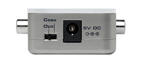 The GefenTV Digital Audio Translator is a compact and convenient coaxial/TOSLINK audio converter that accepts an audio signal input through either coaxial (S/PDIF) or optical (TOSLINK) cable. Both outputs pass simultaneously. The GefenTV Digital Audio Translator can also act as an audio repeater unit, effectively doubling the digital audio distance. The input can be switched from S/PDIF to TOSLINK using the slide switch on the input side.