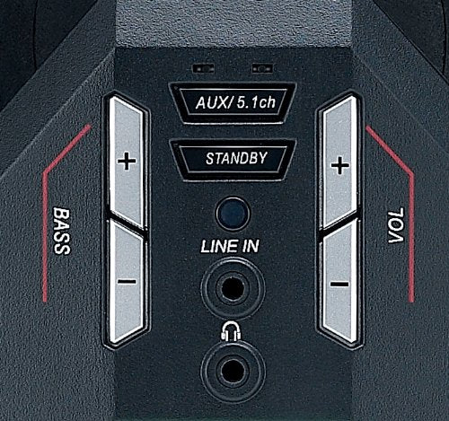 - Total output power 80 watts (RMS)^6.5-inch driver delivers heart-thumping bass^Standby mode selection^Remote control for adjusting volume and bass^Headphone jack for private listening^Colorful LED indicator^2.0/2.1ch or 5.1ch input selection^Dual input for PC 5.1ch sound card, PC, MP3/CD player or TV audio devices